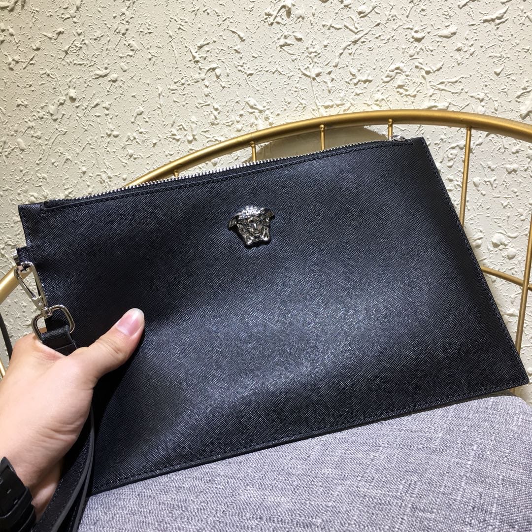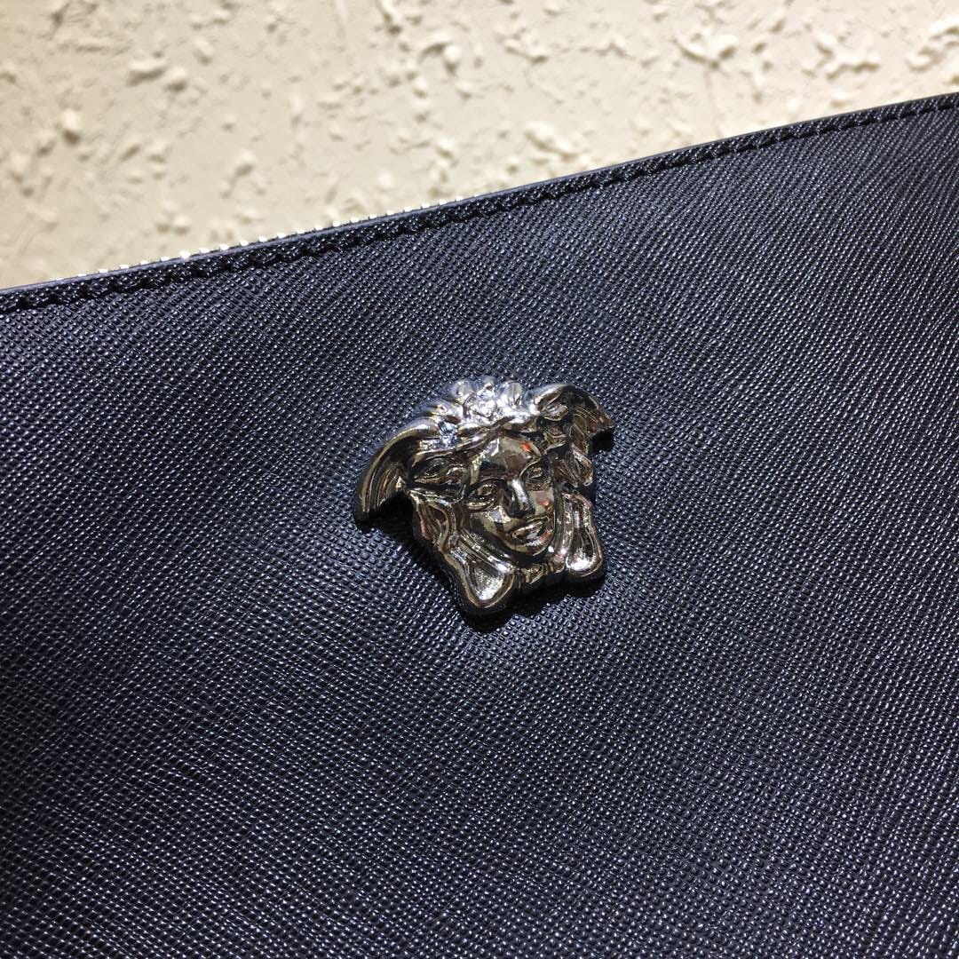 独家实拍?Versace 范思哲 ??专柜爆款??2018春夏专柜必备手拿包。进口头层牛皮、搭配ykk拉链+顶级ip电度 百分百专柜款五金 不褪色 简单休闲 喜欢的朋友别犹豫 ?29-20-1 型号6118-2克银