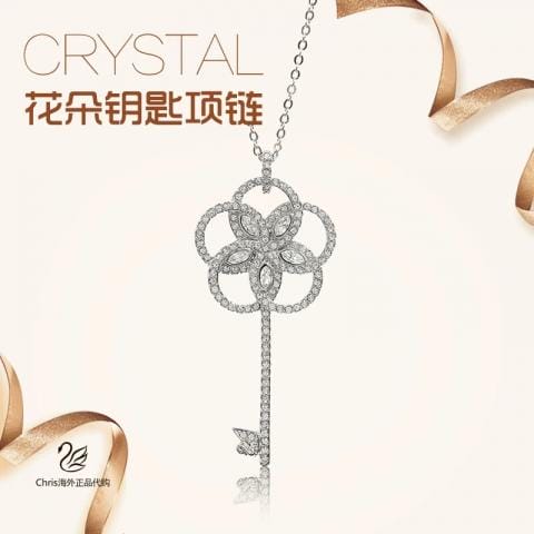 【配全套包装】18年新款 镂空花朵草钥匙这款搭配镀白金色的链