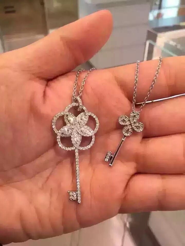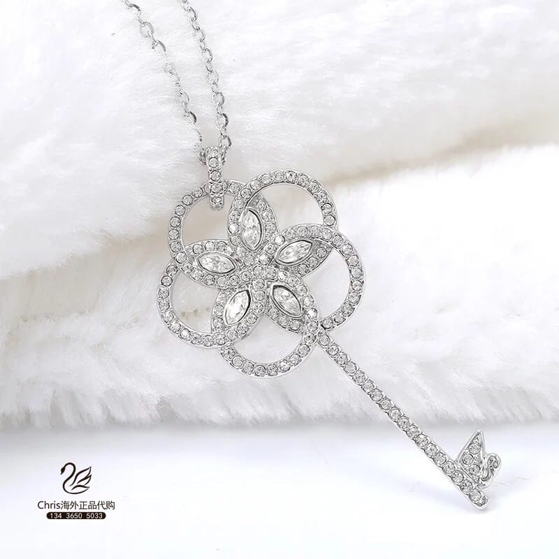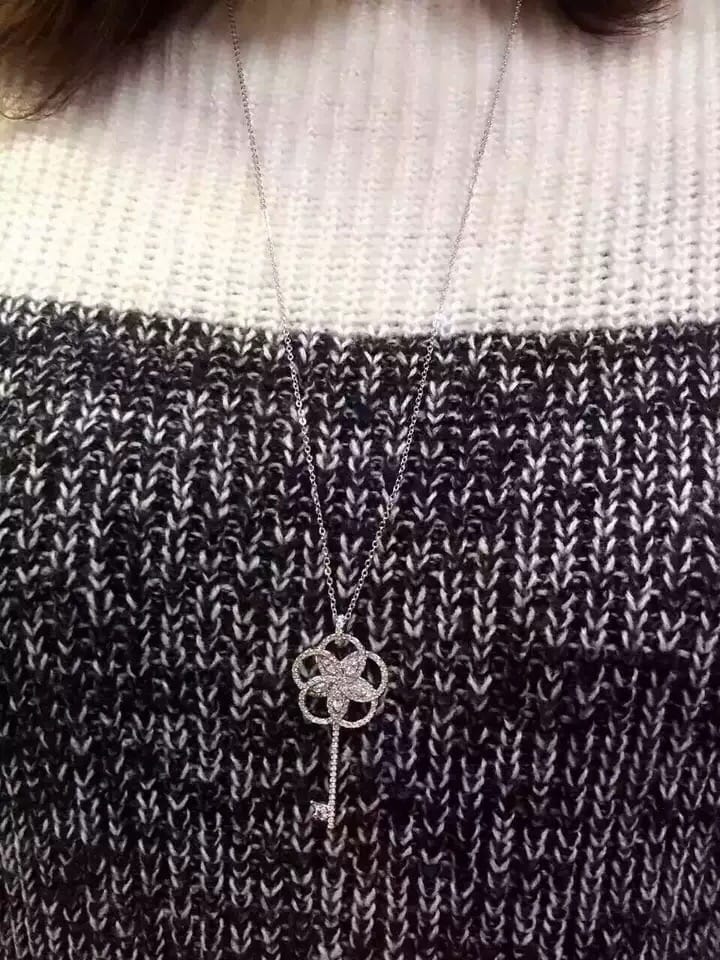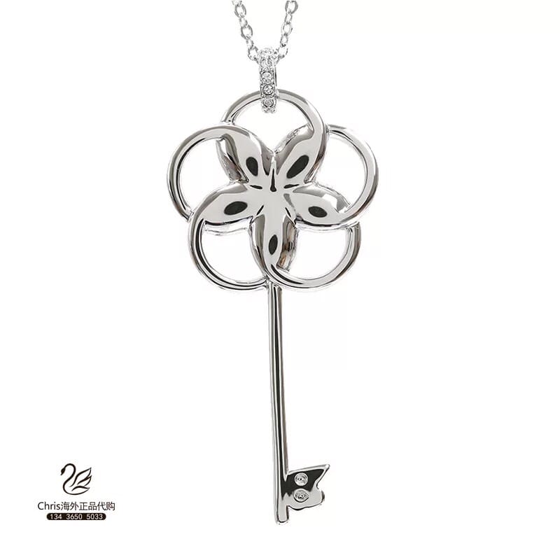 【配全套包装】18年新款 镂空花朵草钥匙这款搭配镀白金色的链