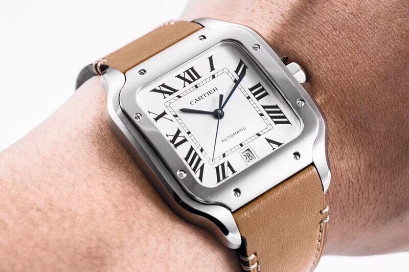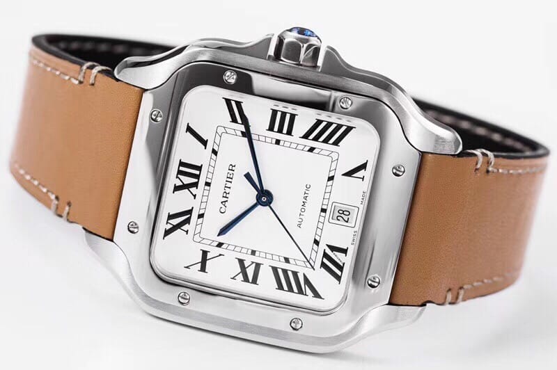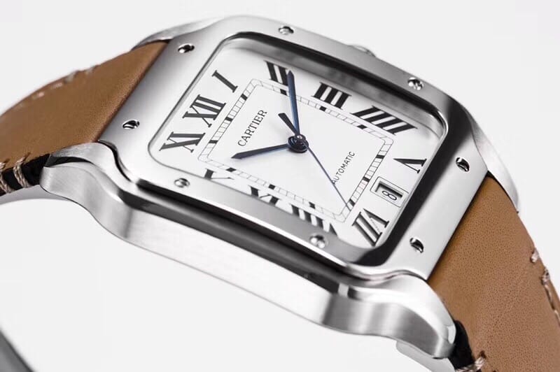 KOR荣耀首发 至尊超薄 无敌之作2018年最新卡 地 亚款-山度士WSSA0009真正正品开模,360度无死角完美一比一表壳直径47.5X39.8 厚度9.08mm材料同步正品,316L精钢顶级打磨,弧度及倒角均无可挑剔,表盘烧钢蓝针及蓝色尖晶石皆与原装保持一致,进口牛皮亦为顶级做工此款腕表白色表盘搭配黑色阿拉伯数字时标、蓝钢指针,具有出色的阅读性。表圈细节则进行了细微的调整——方形表圈沿表耳的弧形轮廓向两侧延伸,视觉上与表链自然衔接,抛光和拉丝质感的对比尤其突出了表圈轮廓。采用定制版进口MIYOTA9015加强型机芯,达到与原装一致的指针高度,且可力保腕表的稳定性业内首创同步正品的QuickSwitch专利系统(表带/表链)通过轻按按钮即可轻松替换表带,十分便利。表底为密底拉丝设计,底盖刻字一丝不苟,工艺十分严谨。此款卡 地 亚山度士可谓注入现代精髓的经典美学之作,时尚且精致,KOR完美诠释,实为解毒又一佳作。