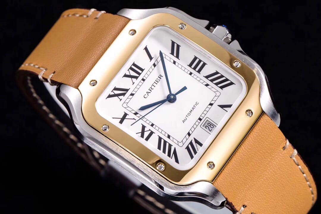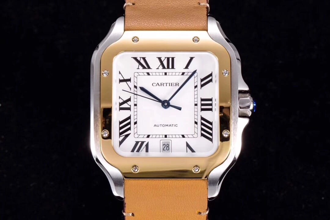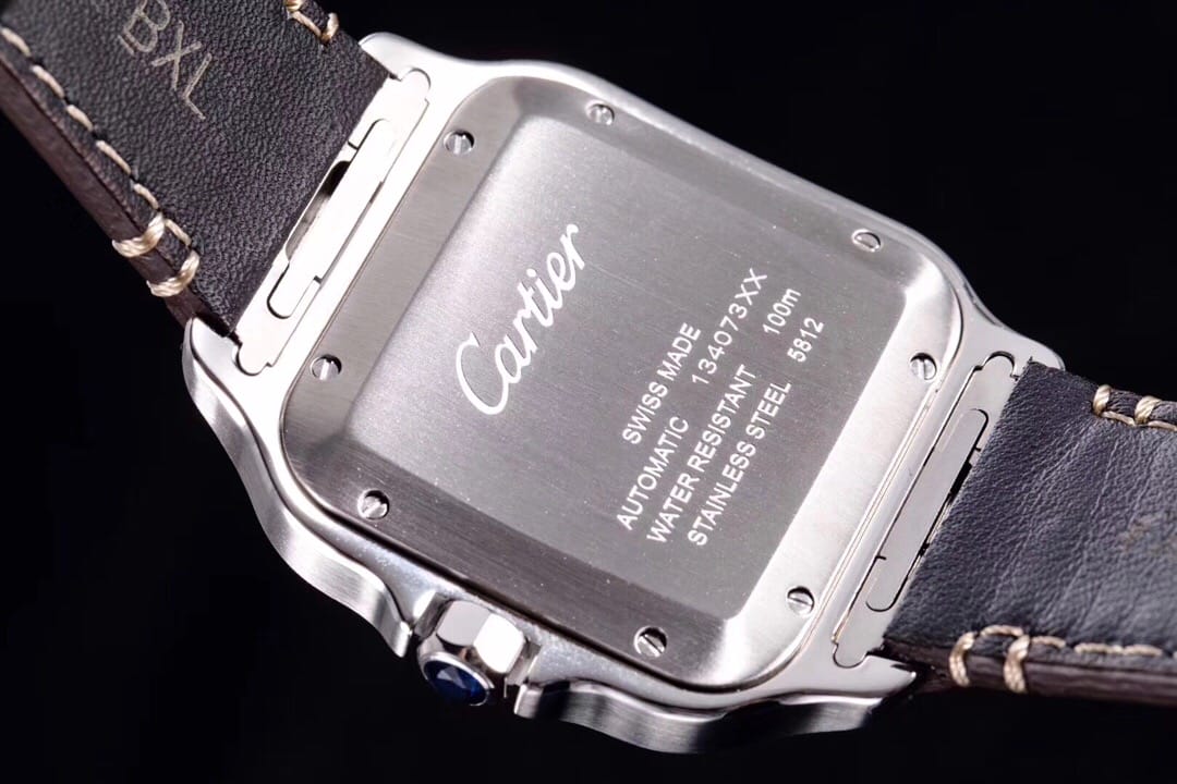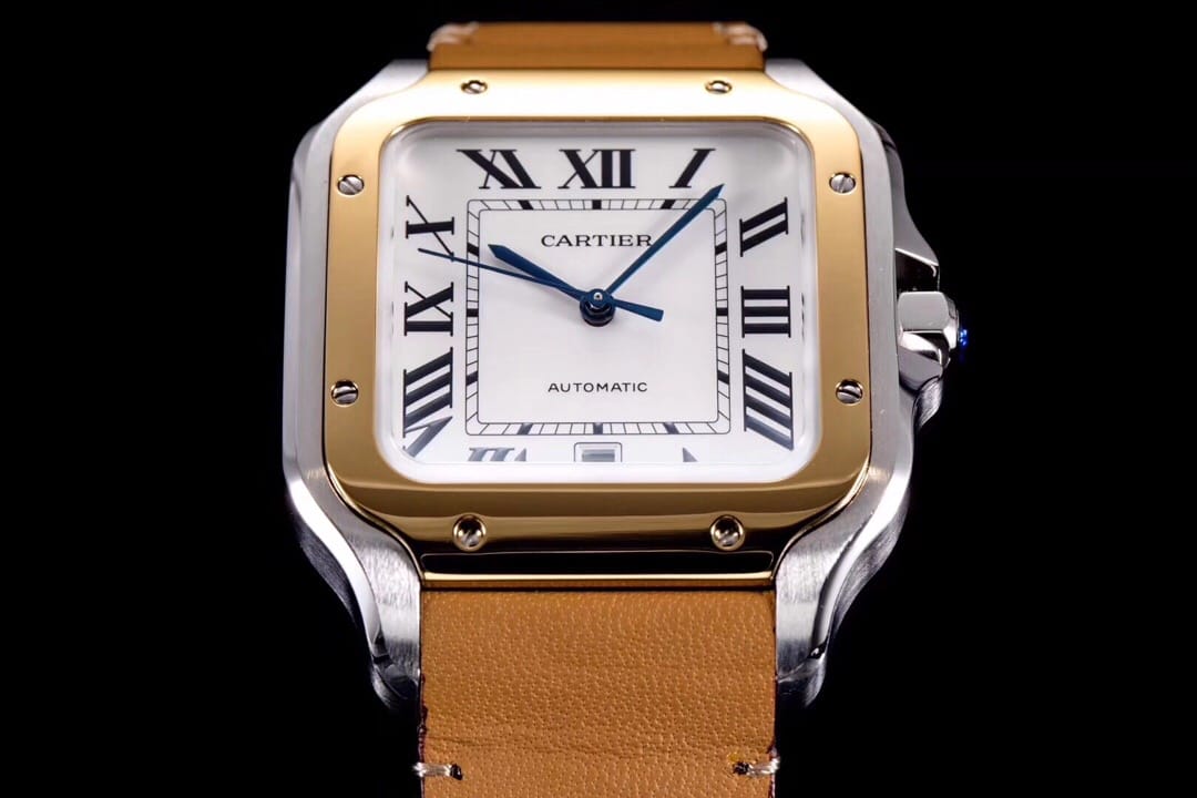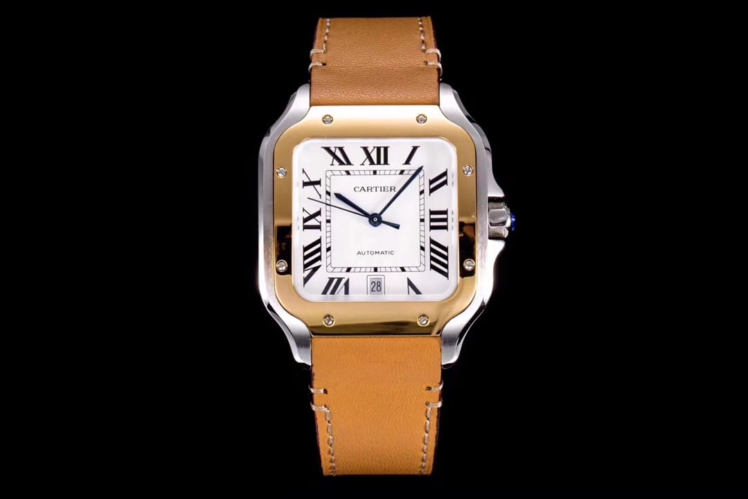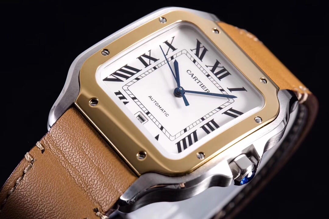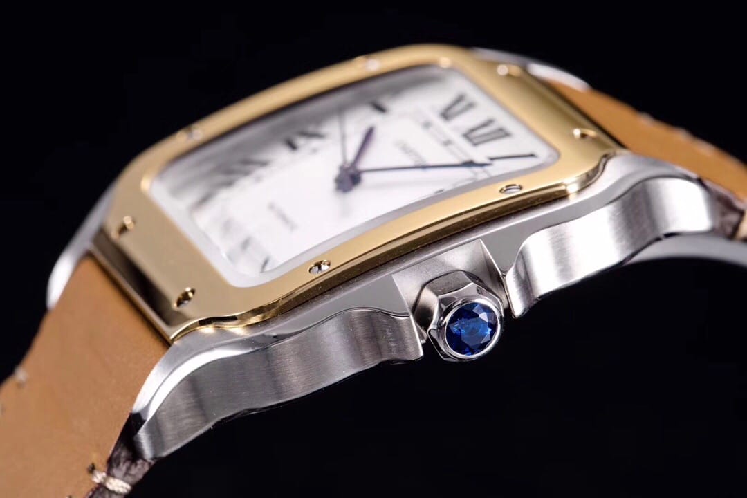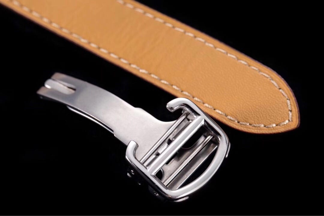 KOR荣耀首发 至尊超薄 无敌之作2018年最新卡 地 亚间金款-山度士WSSA0009真正正品开模,360度无死角完美一比一表壳直径47.5X39.8 厚度9.08mm材料同步正品,316L精钢顶级打磨,弧度及倒角均无可挑剔,表盘烧钢蓝针及蓝色尖晶石皆与原装保持一致,进口牛皮亦为顶级做工此款腕表白色表盘搭配黑色阿拉伯数字时标、蓝钢指针,具有出色的阅读性。表圈细节则进行了细微的调整——方形表圈沿表耳的弧形轮廓向两侧延伸,视觉上与表链自然衔接,抛光和拉丝质感的对比尤其突出了表圈轮廓。采用定制版进口MIYOTA9015加强型机芯,达到与原装一致的指针高度,且可力保腕表的稳定性业内首创同步正品的QuickSwitch专利系统(表带/表链)通过轻按按钮即可轻松替换表带,十分便利。表底为密底拉丝设计,底盖刻字一丝不苟,工艺十分严谨。此款卡 地 亚山度士可谓注入现代精髓的经典美学之作,时尚且精致,KOR完美诠释,实为解毒又一佳作。