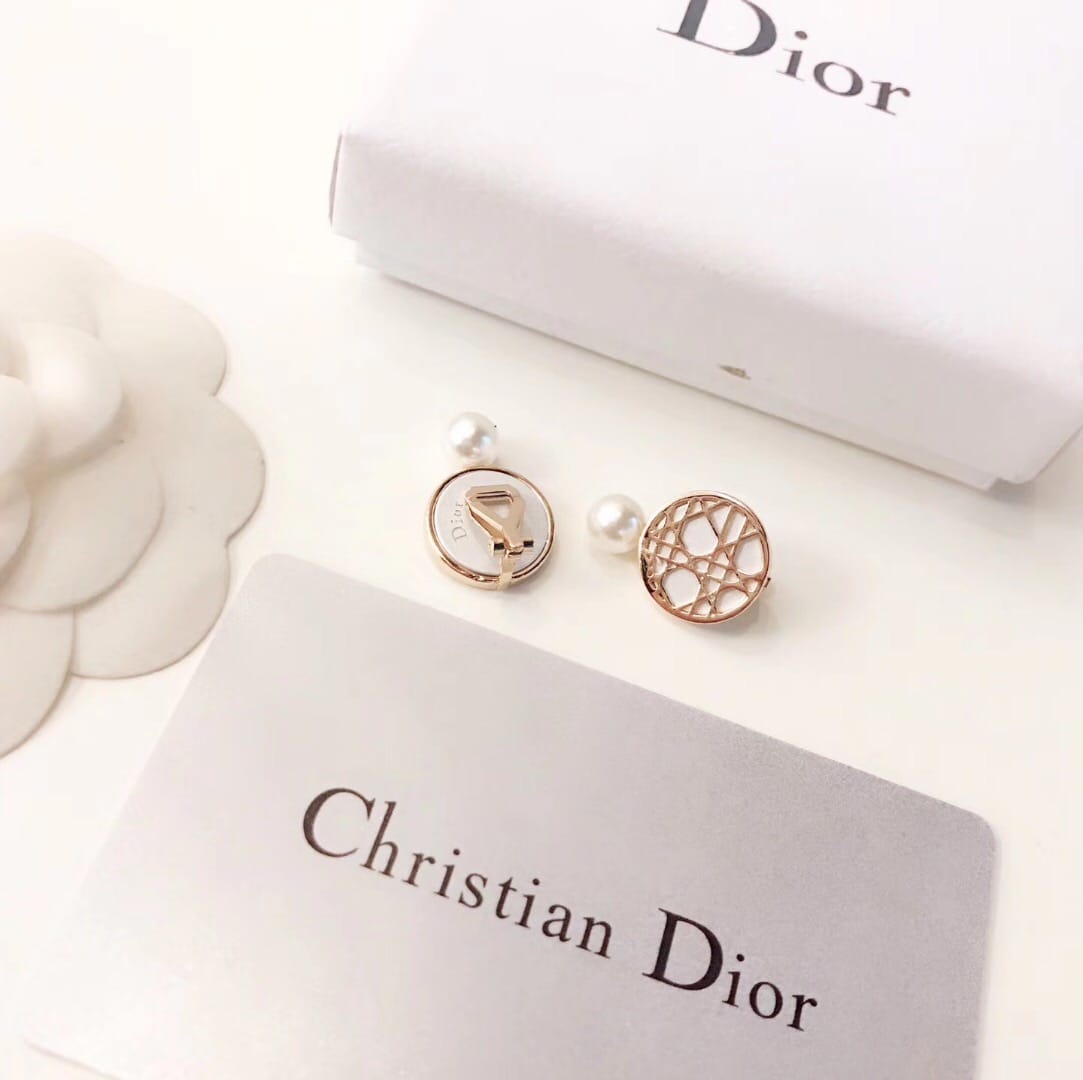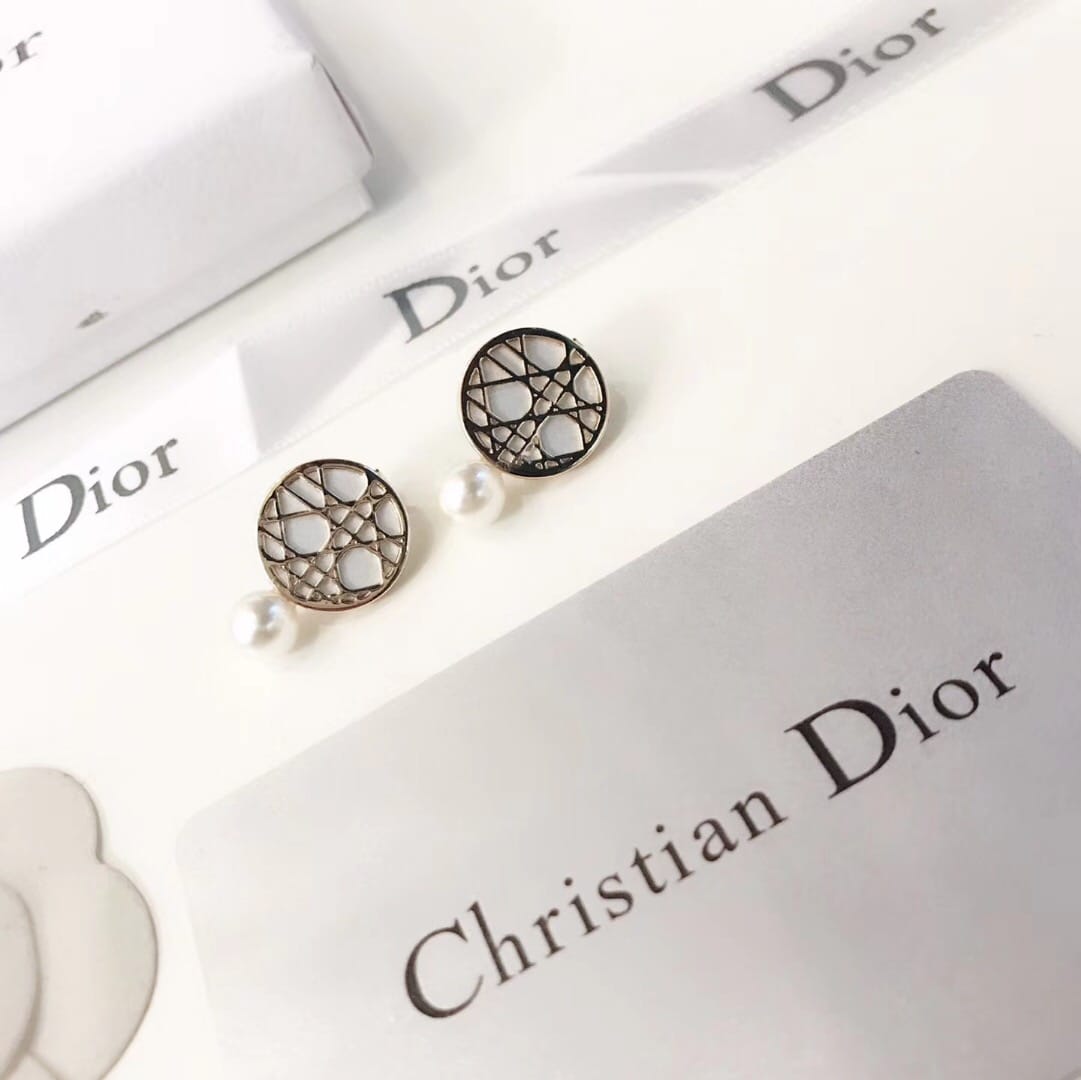 【配全套包装】?Dior 迪奥 经典迪奥镂空纹珍珠耳夹 没有