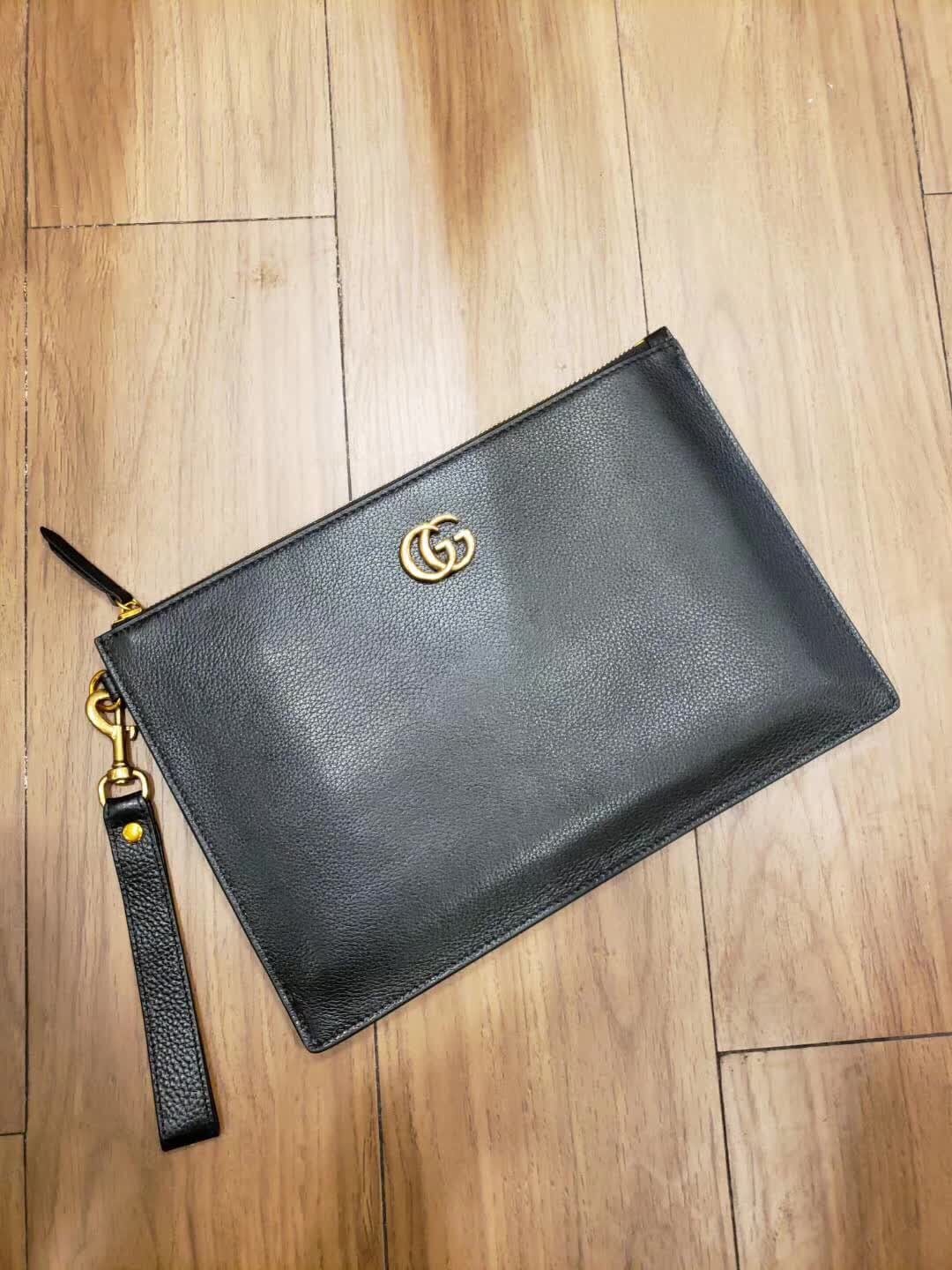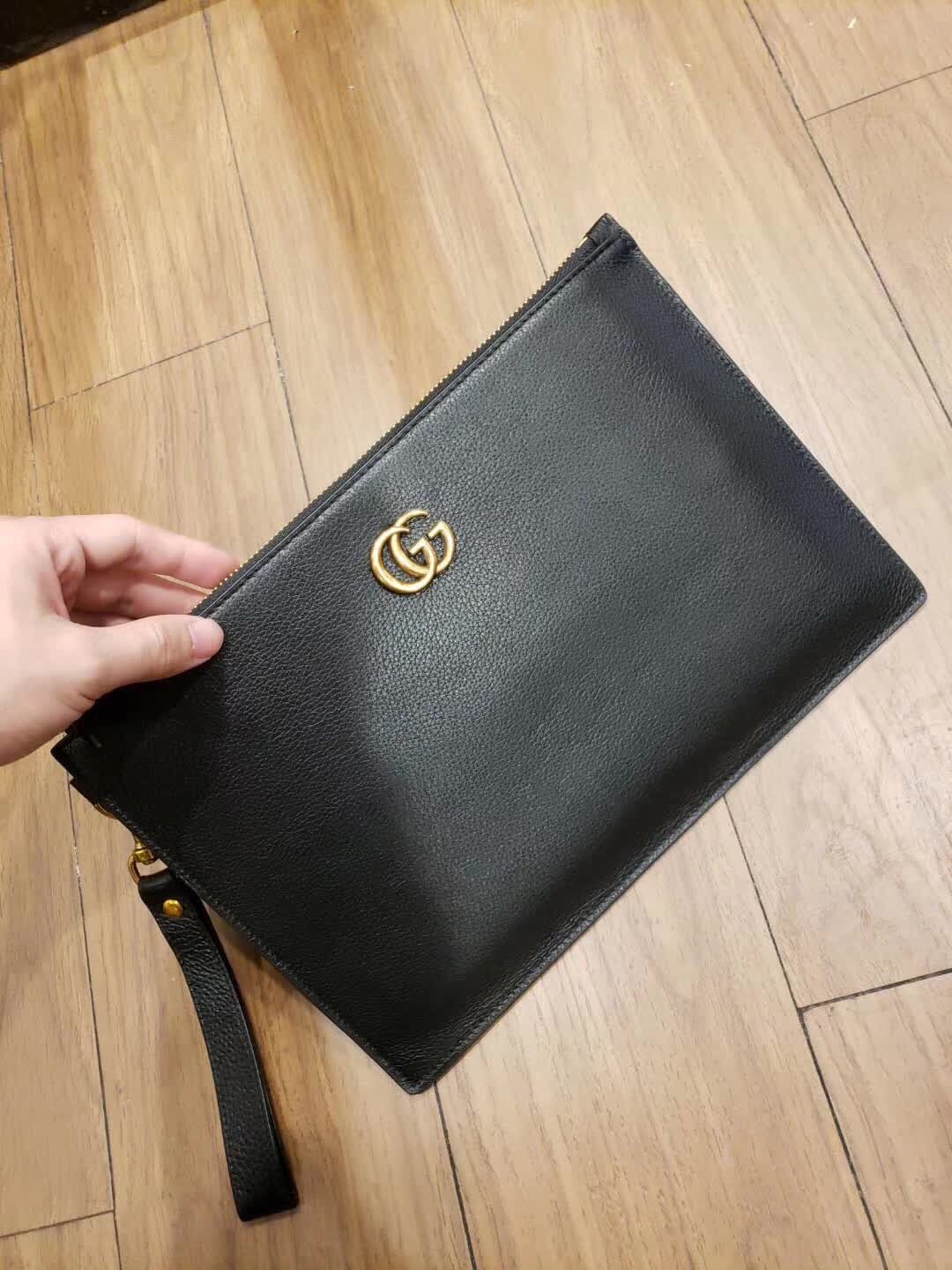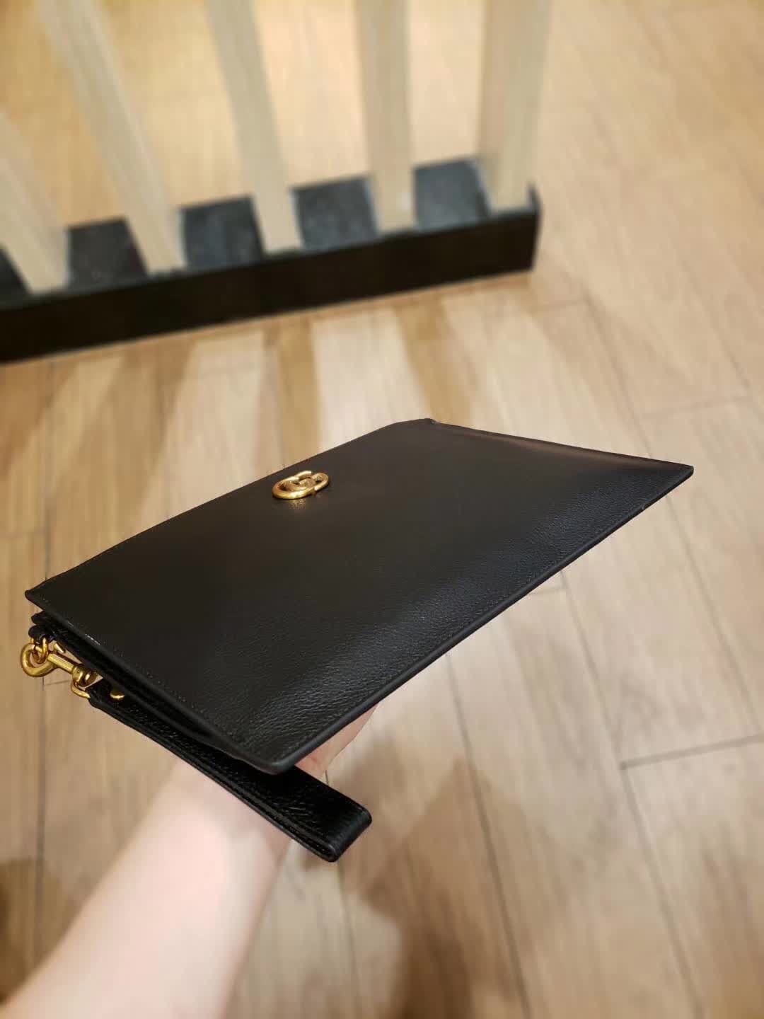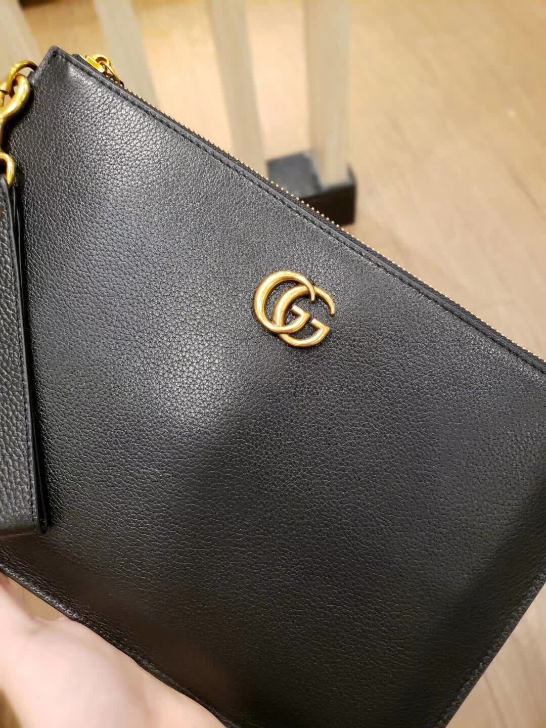 欧洲正品原单!采用进口牛皮,配以Gucci的新款黄铜色小双G,简单大气,非常实用,做工精湛,实物拍摄,型号475317黑全皮,尺寸宽30×高20×深1.5厘米