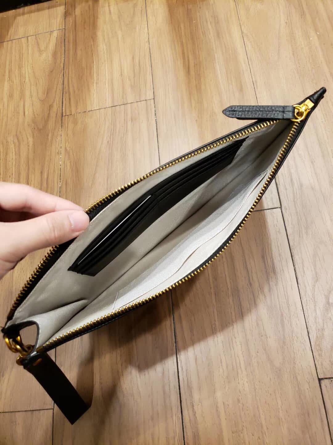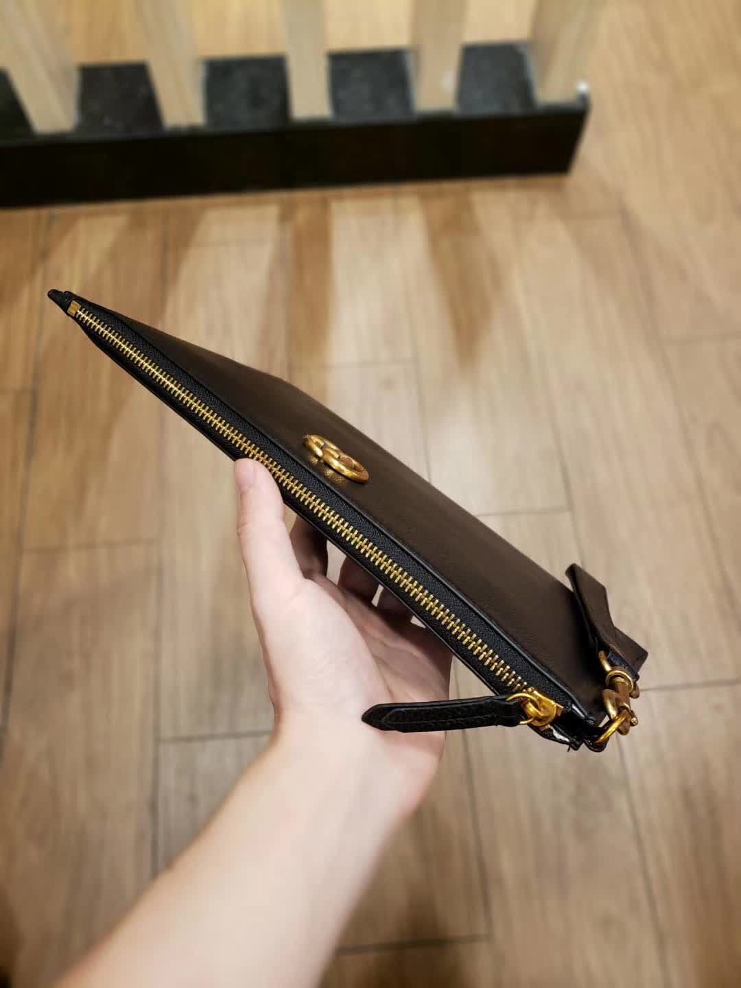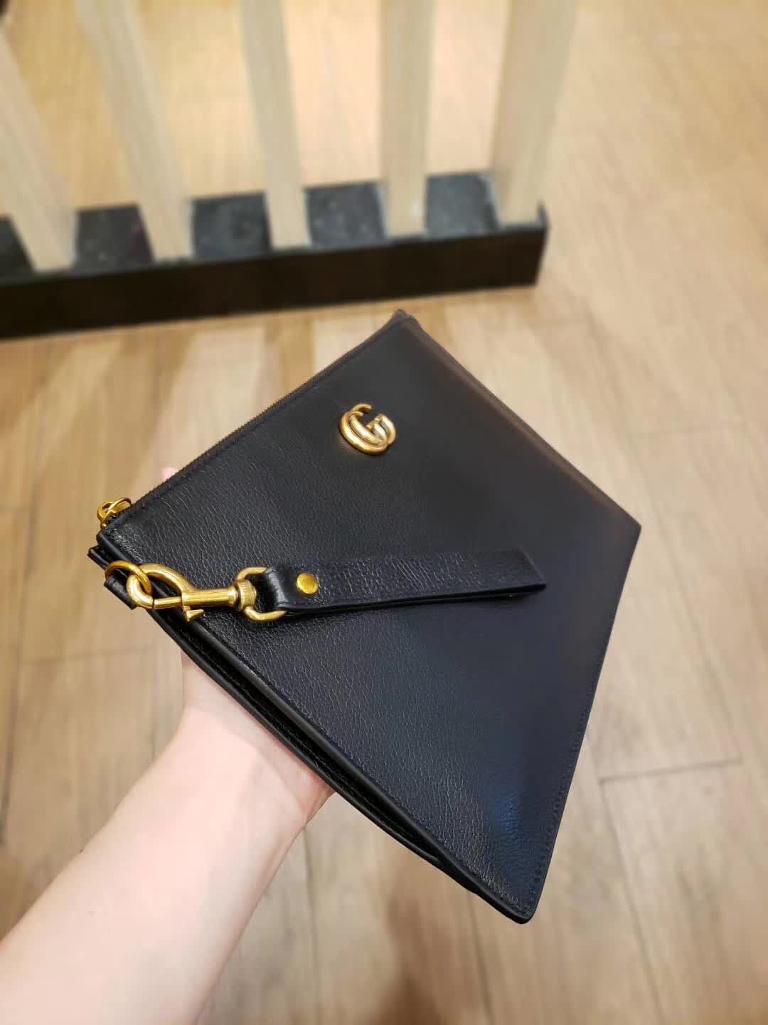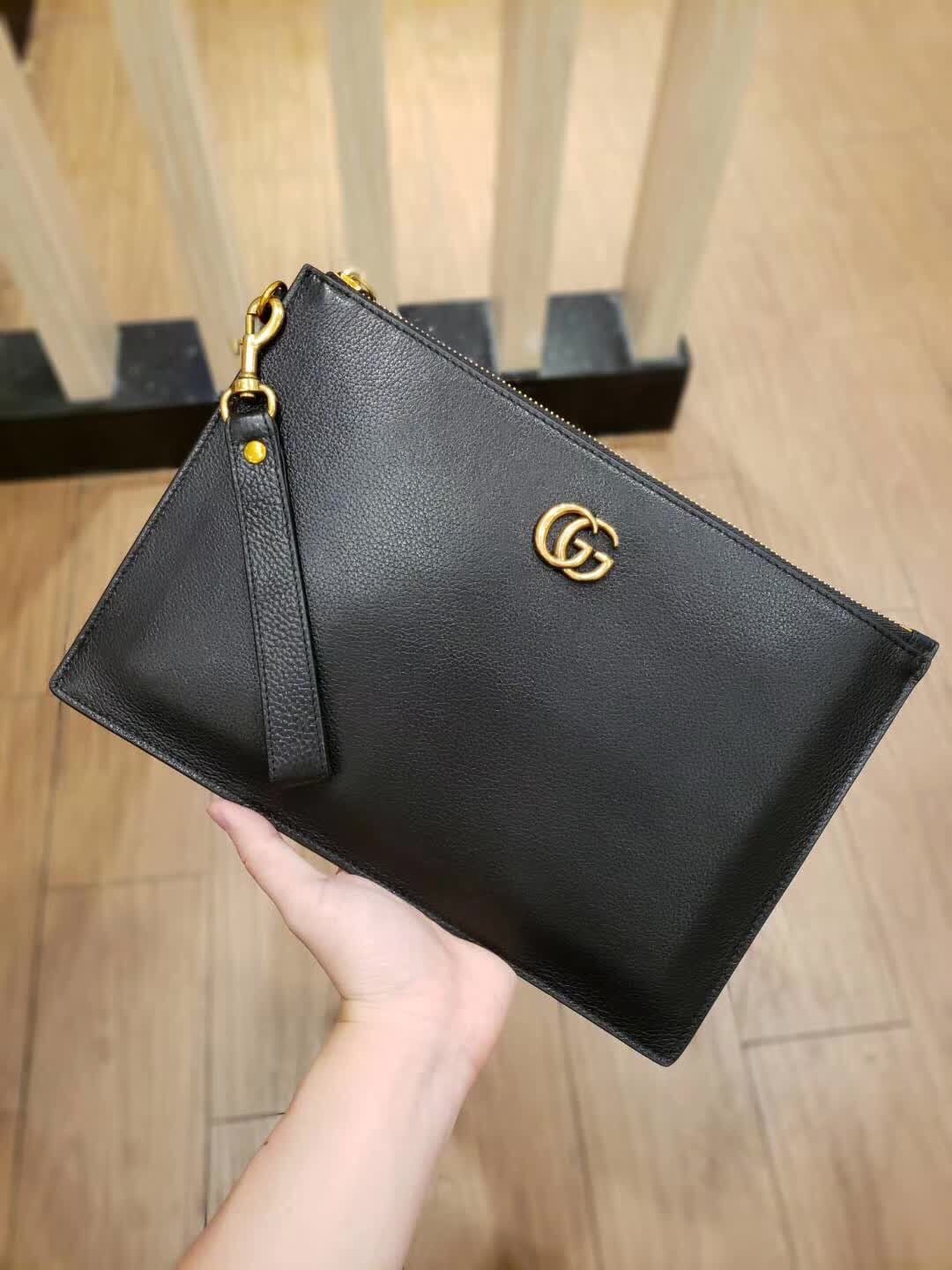 欧洲正品原单!采用进口牛皮,配以Gucci的新款黄铜色小双G,简单大气,非常实用,做工精湛,实物拍摄,型号475317黑全皮,尺寸宽30×高20×深1.5厘米