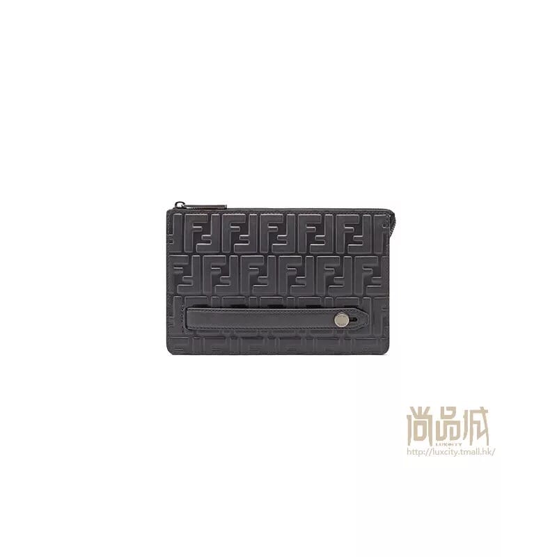 原官网6715新唛圆标手拿包。镶边以金属钮扣装饰,缀有FEN