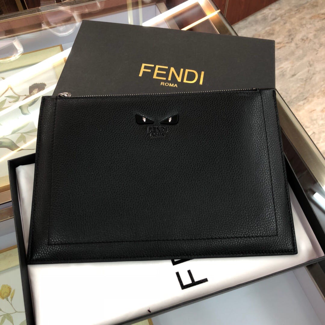 原官网6714黑眼睛小怪兽手拿包。镶边以金属钮扣装饰,缀有F