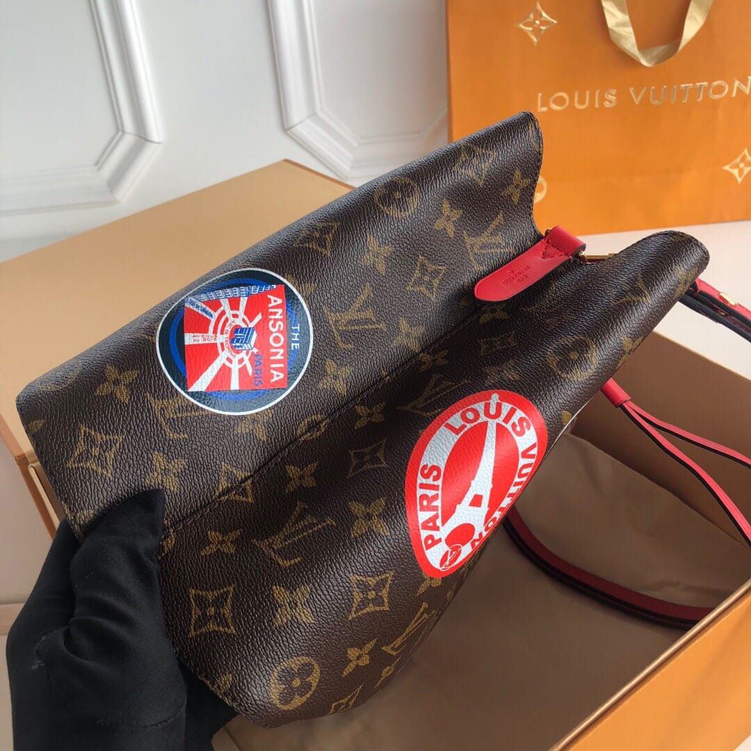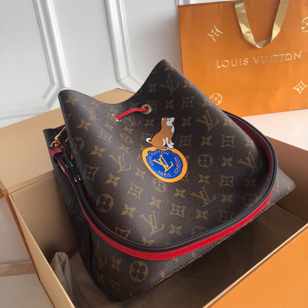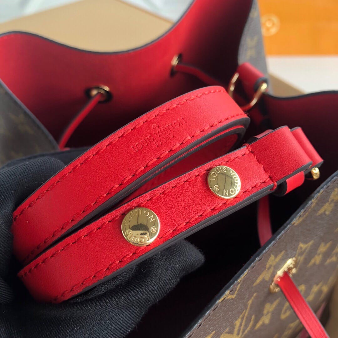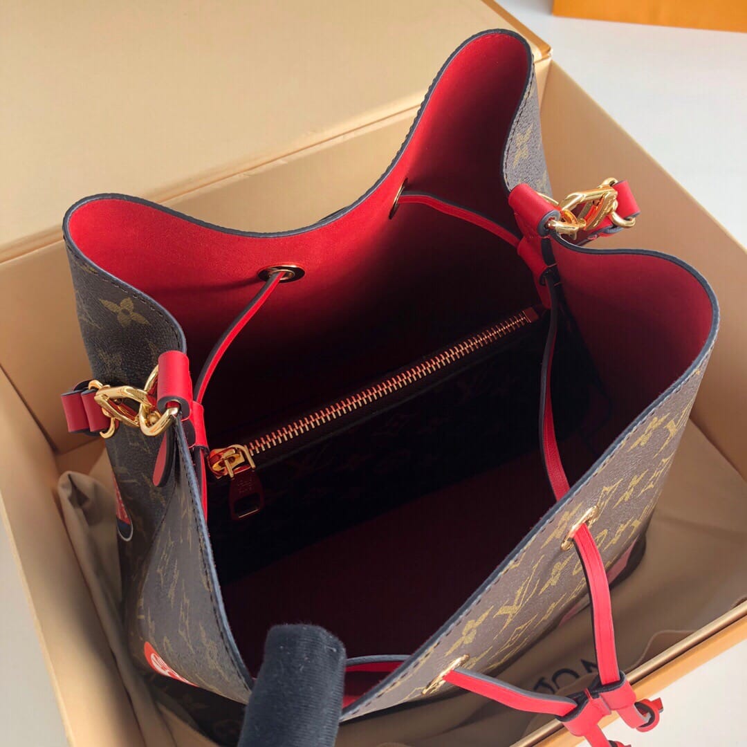 【独家实拍PO1072】? 秋冬新品?丝印!诞生于1932年的香槟酒袋Noe以全新面貌回归2019年!新潮水桶包Neonoe选用柔软的Monogram帆布面料,并搭配缤纷多彩的小牛皮装饰。可调节肩带设计便于打造风格现代的斜挎造型。26X22X27CM 长X高X宽 Monogram涂层帆布面料,彩色小牛皮饰边,彩色超细纤维粘合内衬,金色金属饰件,束绳闭合,配有摁扣的可调节长包带,拉链内袋。斜背带长122Cm!肩背带长72Cm 认准图片正品包装