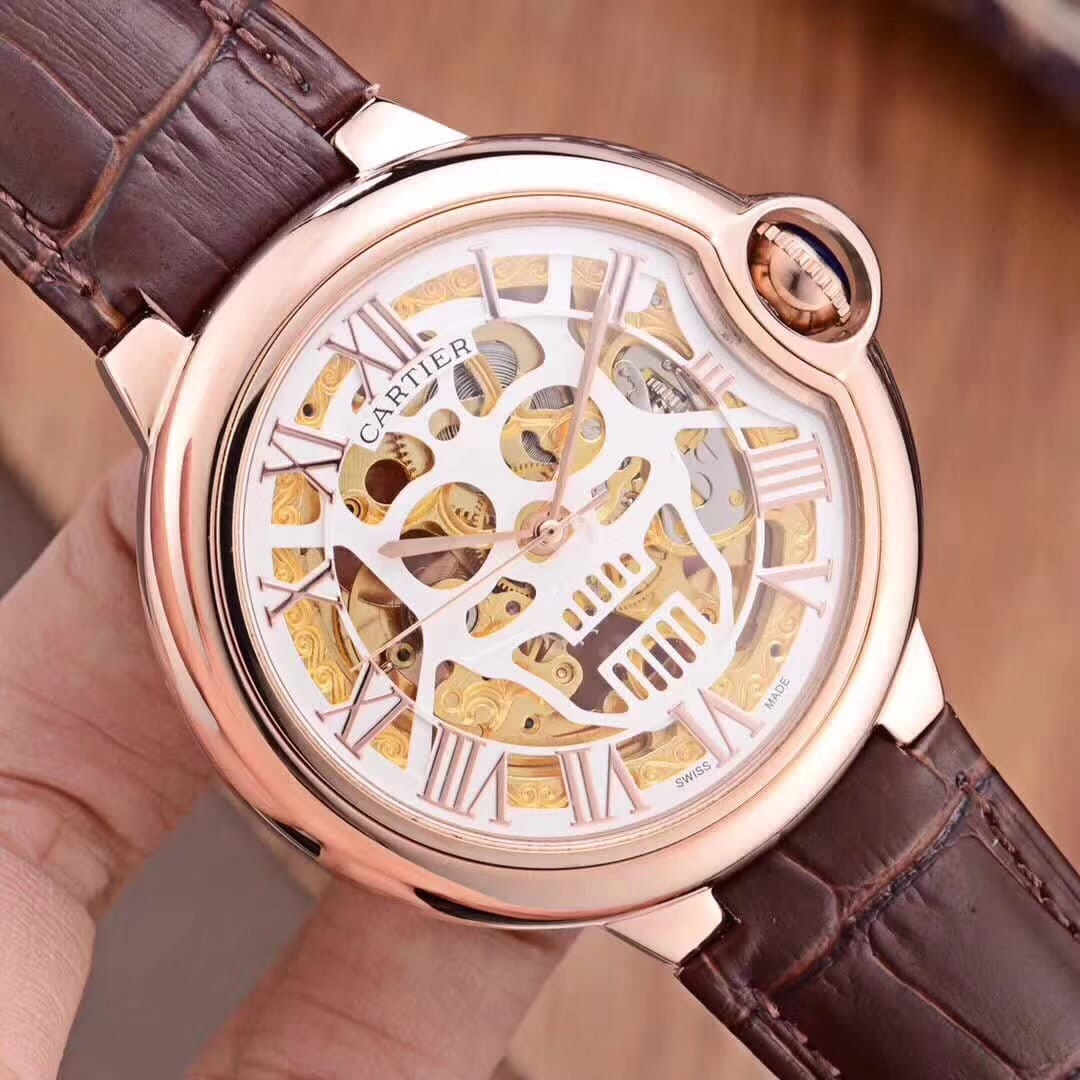 卡地亚最新设计镂空精品男士腕表 真牛皮表带 全自动机械机芯