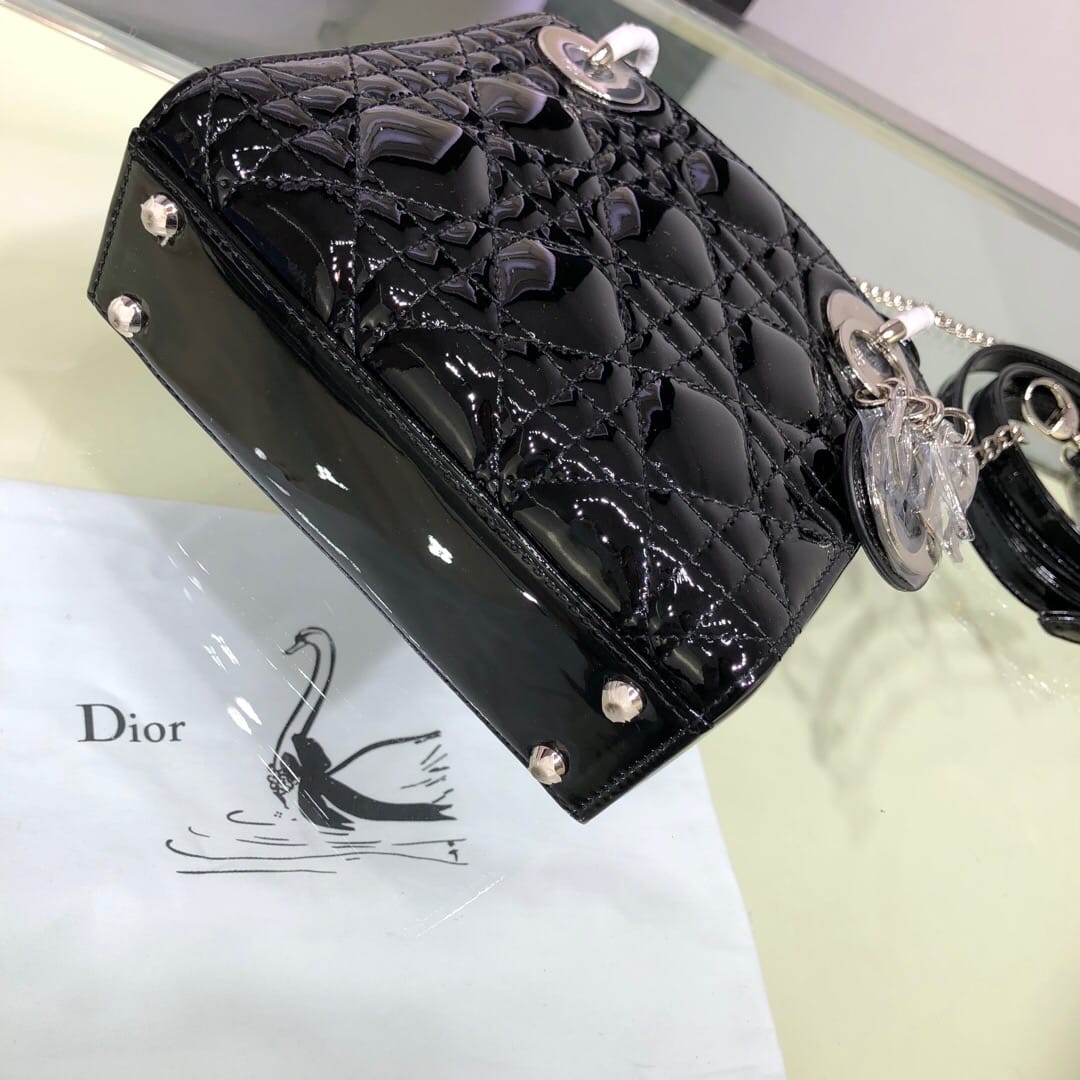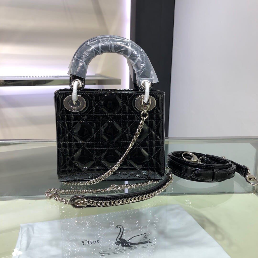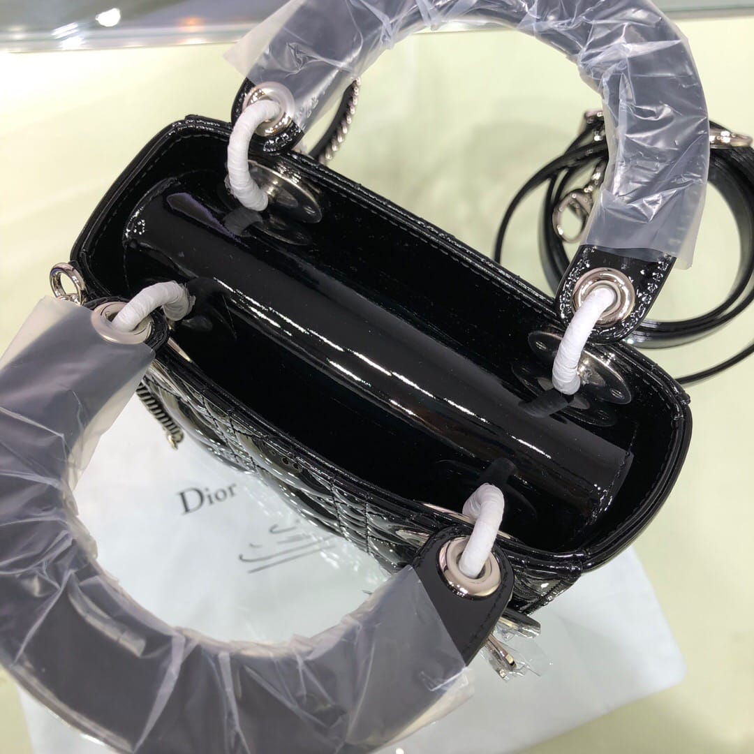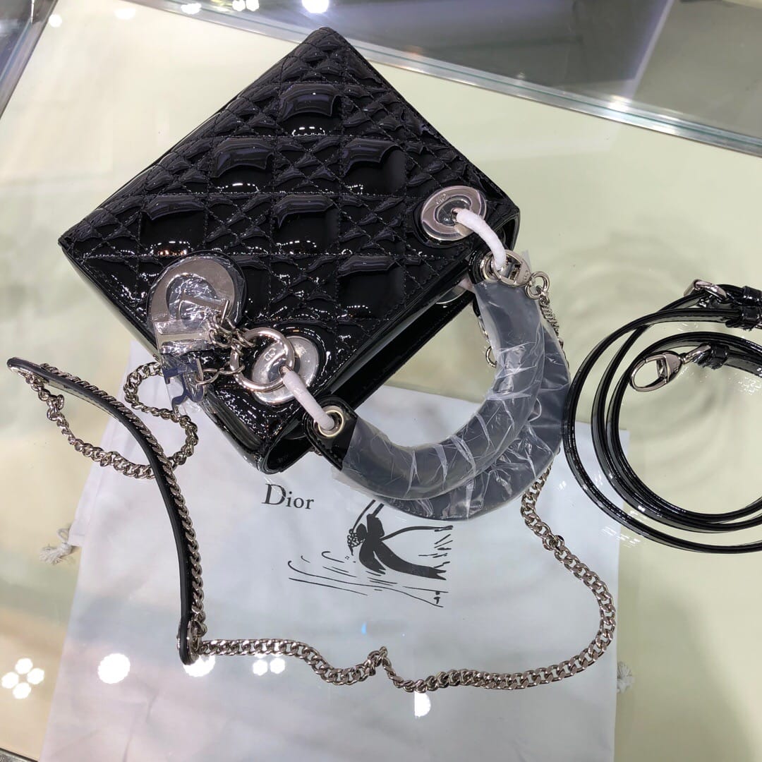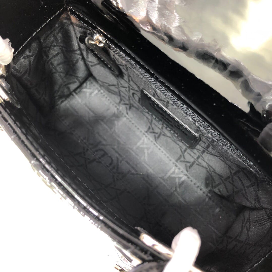 My Lady Dior 专柜新款 单肩手提包小号,经典款单肩斜挎英国皇室戴妃包,原版五金,进口漆皮绣花3??格,可拆卸的真皮肩带,还有1??条金属细链带皮扣,羊皮手感柔软超细腻?开口设计改为羊皮翻盖,舒适又不失优雅,时尚简约设计?款号:44531,尺寸:17x14x7cm【配专柜礼盒礼袋】