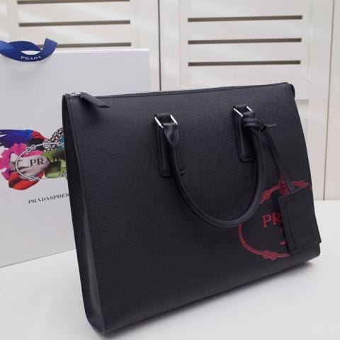 P家限量版最新款男士?公文包,2VG039压麦黑/红出货?