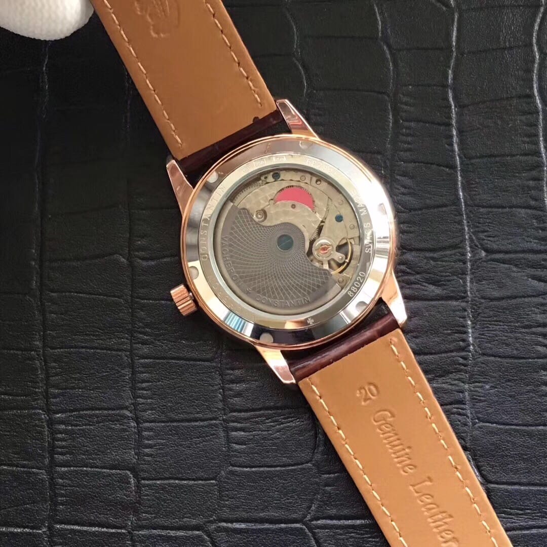 飞轮精选??优雅尊贵?? ?品 牌:江诗丹顿/Vacheron Constantin ?适用人群:男士 ?机芯类型:机械 ?驱动方式:自动上链 ?表壳材质:316L精钢 ?表壳直径:约42mm ?表壳厚度:约13mm ?表镜材质:矿物质玻璃 ?表带材质:皮质/精钢 ?表 底:透底 ?表 扣:针扣 ?简约时尚 商务休闲最佳搭档