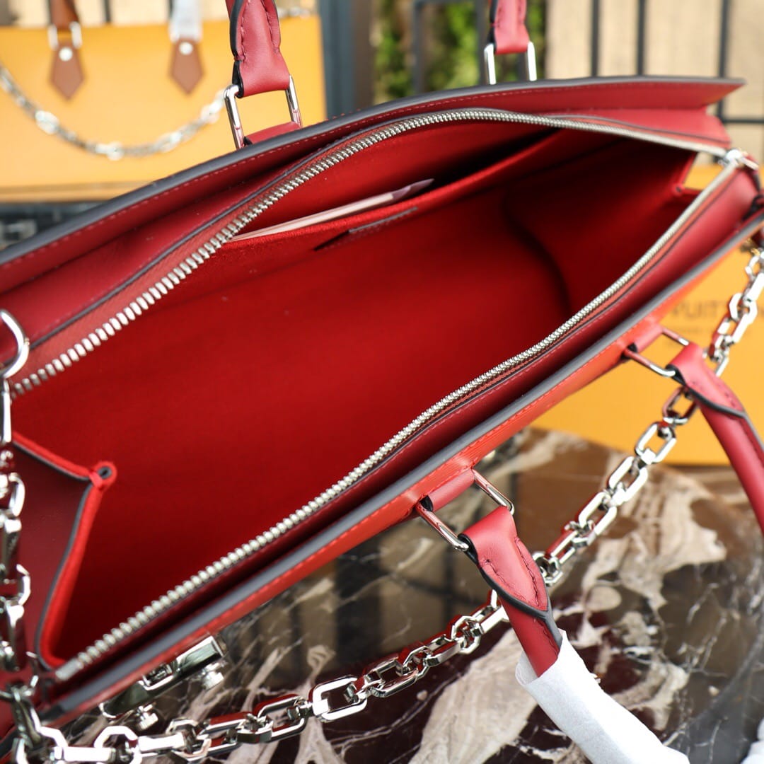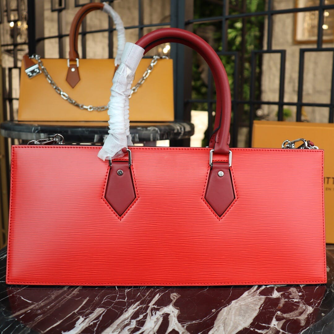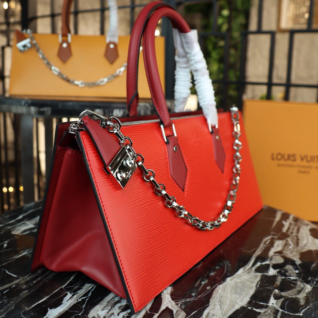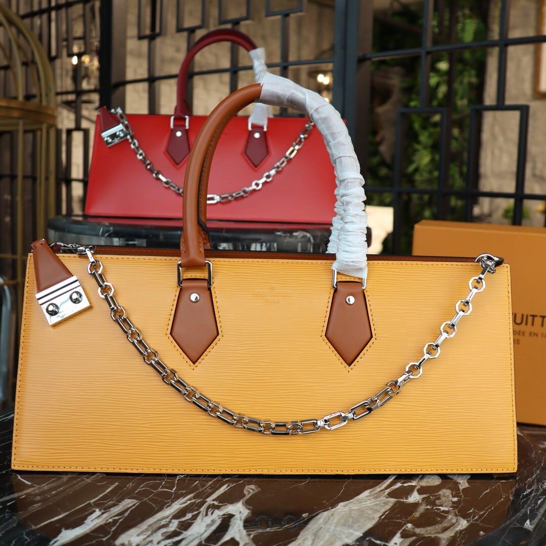 LU SAC TRICOT 手提包 M52805 2019早春系列中的杰作:此款Sac Tricot手袋的设计原型为1934年的针织工具包,女装艺术总监Nicolas Ghesquière从路易威登传统之中汲取了丰富的新鲜灵感。新款六角链式肩带与亮黄色Epi皮革等细节设计提升时尚气质,展现活力风采。-压纹Epi皮革与磨面小牛皮-小牛皮饰边-超细纤维内衬-银色金属饰件-一对铰链Toron手柄-可脱卸六角链式肩带-标志性锁扣设计-拉链开合,安全牢靠-size39*14*17??