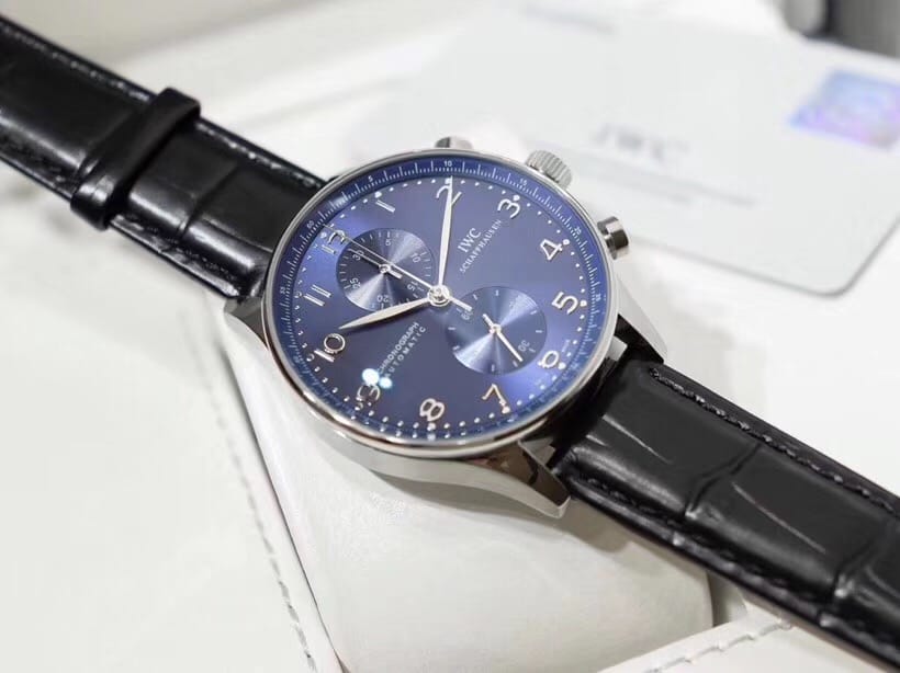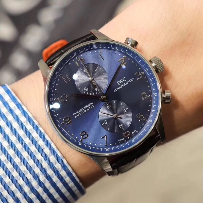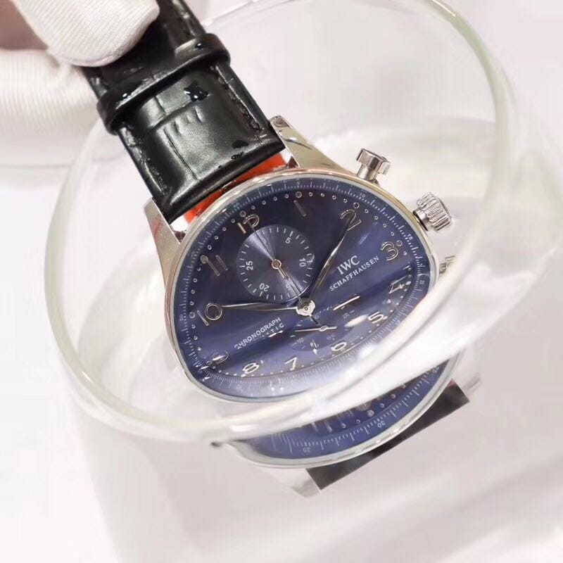 IWC万国 葡萄牙计时vk计时跑秒腕表 精钢拉丝表壳 正品开模 直径40.9mm 穹型高通透镜面 石英计时码机芯(校时精准)真皮表带 折叠扣 普通扣皆有 强力防水