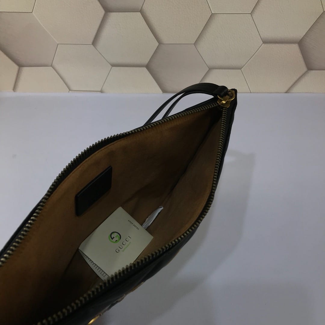 Gucci新款手包,双面一致,黑色进口牛皮压G, 三隔层制作