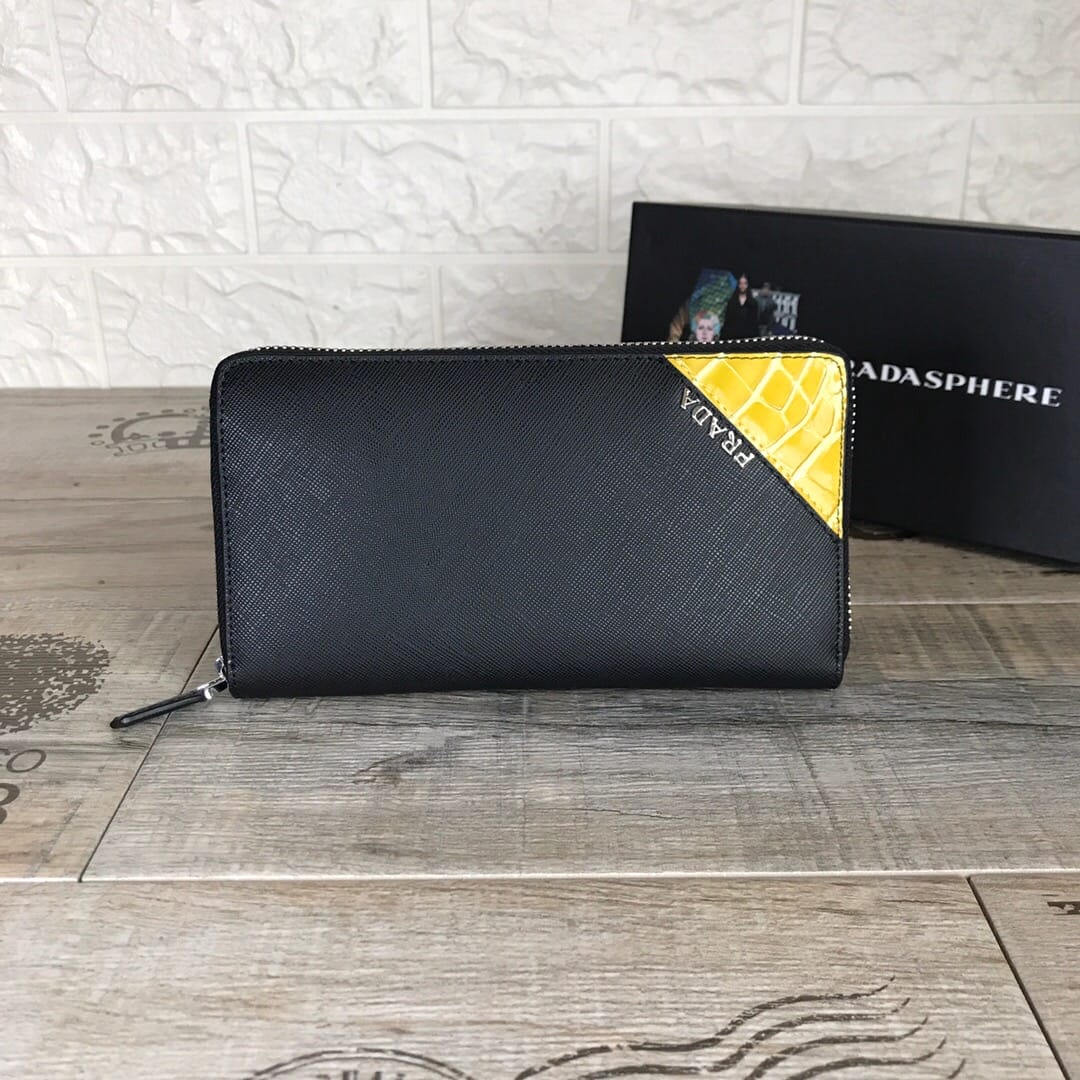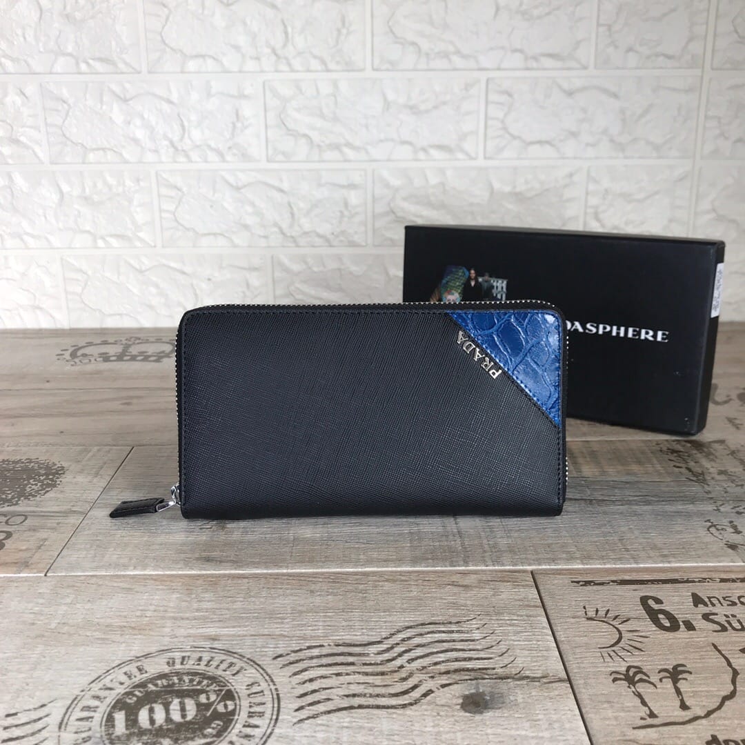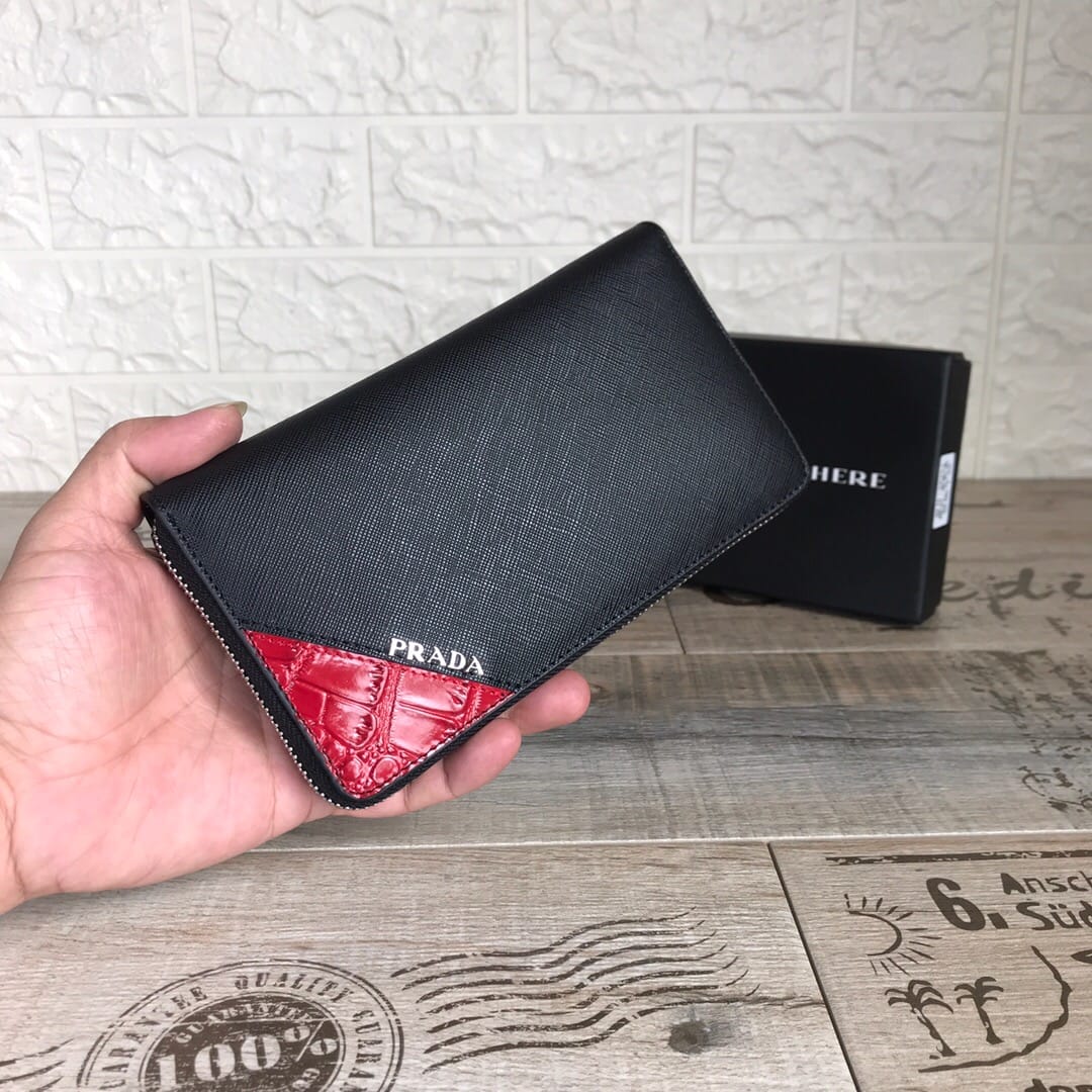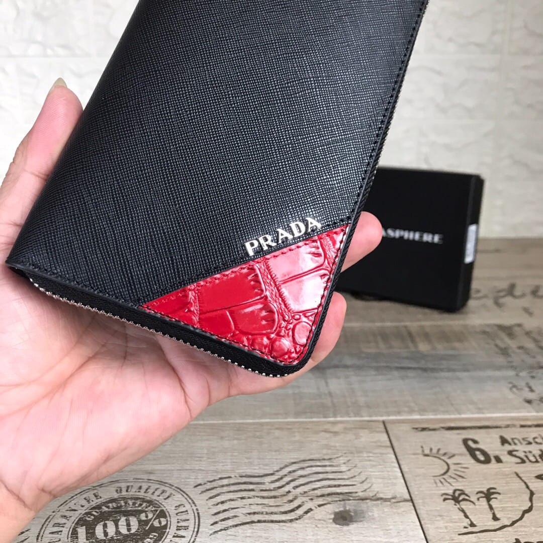Prada(普拉达2NG001))经典男士十字纹配鳄鱼压纹,