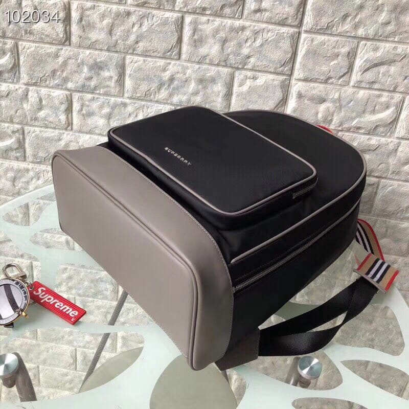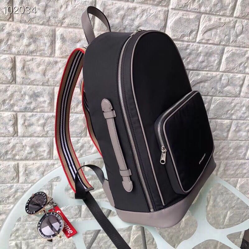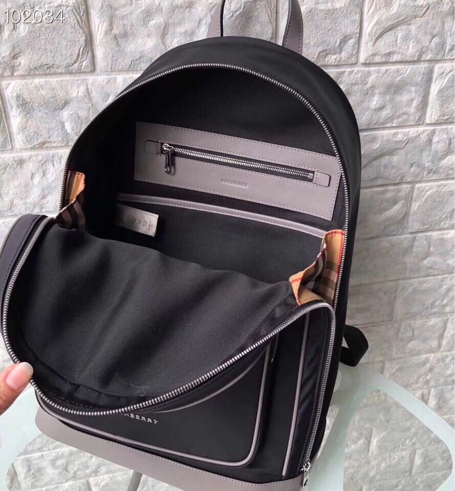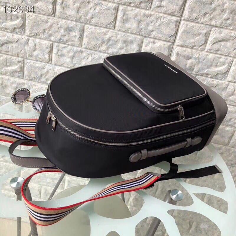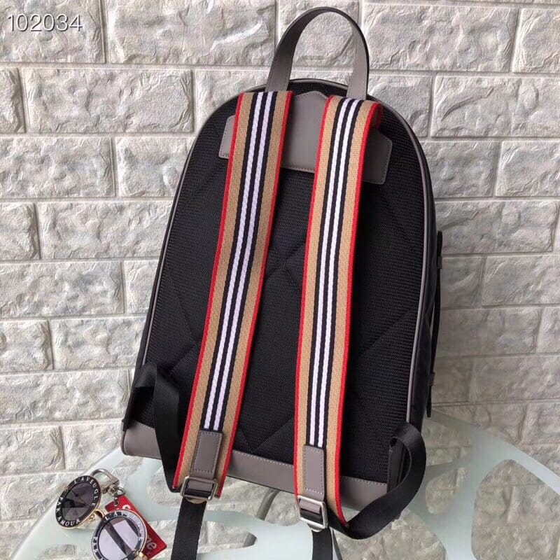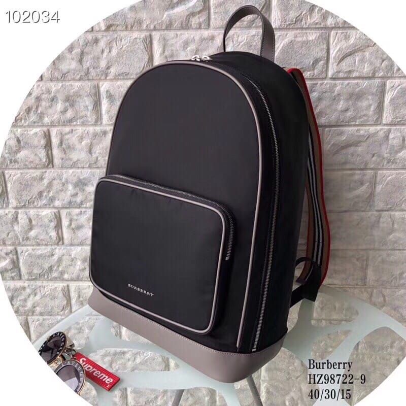 Burberry ? 阳光??明媚的冬季新款!想带你去看晴空万里... HZ98722-9,尺寸:40/30/15。 轻薄尼龙双肩包,搭配平滑皮革边饰,肩背带饰有 Heritage 条纹,设计致敬品牌 House 格纹色调。内部侧面加固衬片点缀品牌典藏 Vintage 复古格纹。外层:100%聚酰胺 装饰:100%皮革 内衬:100%聚酰胺 顶部皮革提柄 可调式肩背带 1个拉链外袋;1个拉链内袋 笔记本电脑隔层 拉链开合 手绘涂漆边缘 亮泽金属配件 正面饰有 Burberry 字母印花徽标