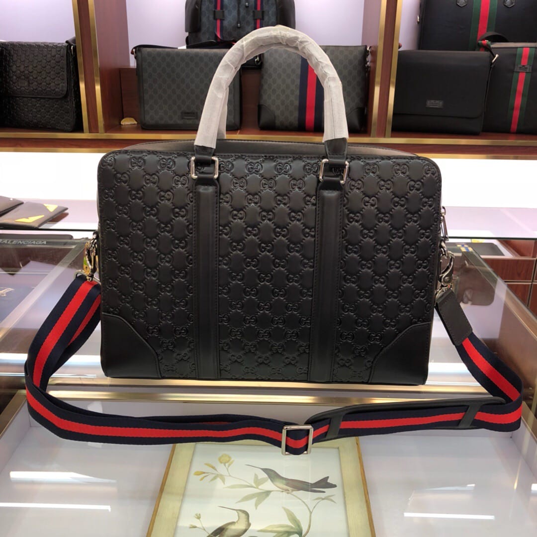 406408 薄款皮革全牛皮热压双G邮差包,配有可拆卸肩带,