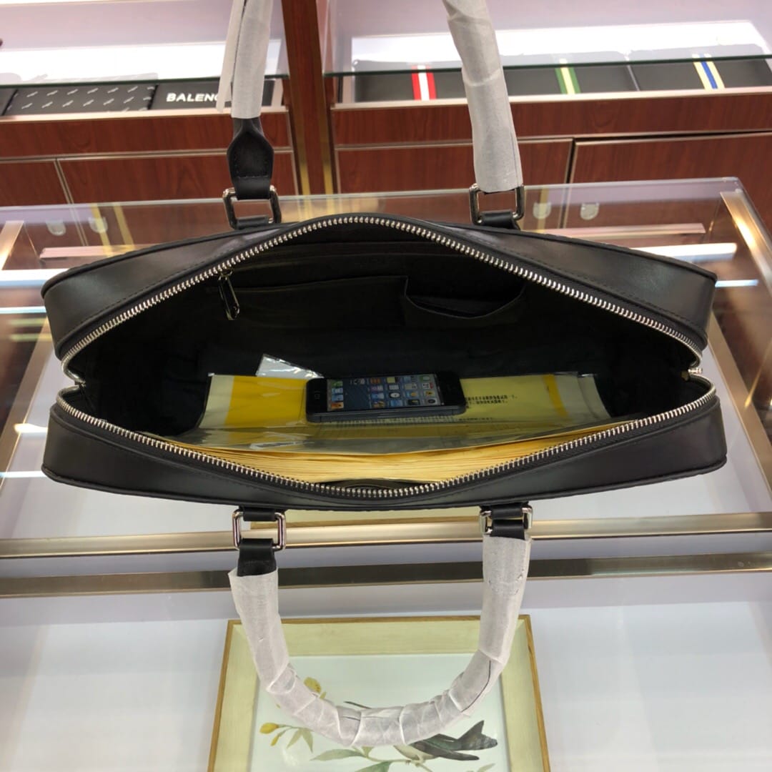 451169黑色全皮压花扁平公文包,配有可拆卸肩背带,使用G