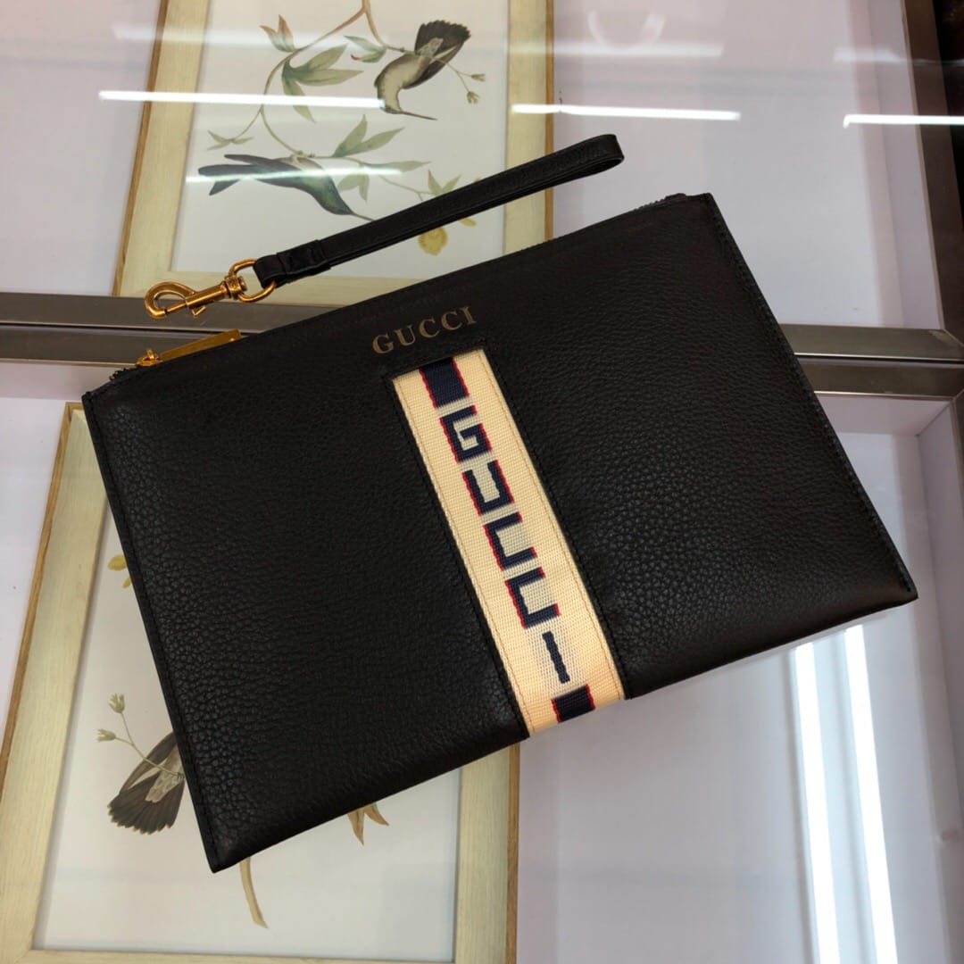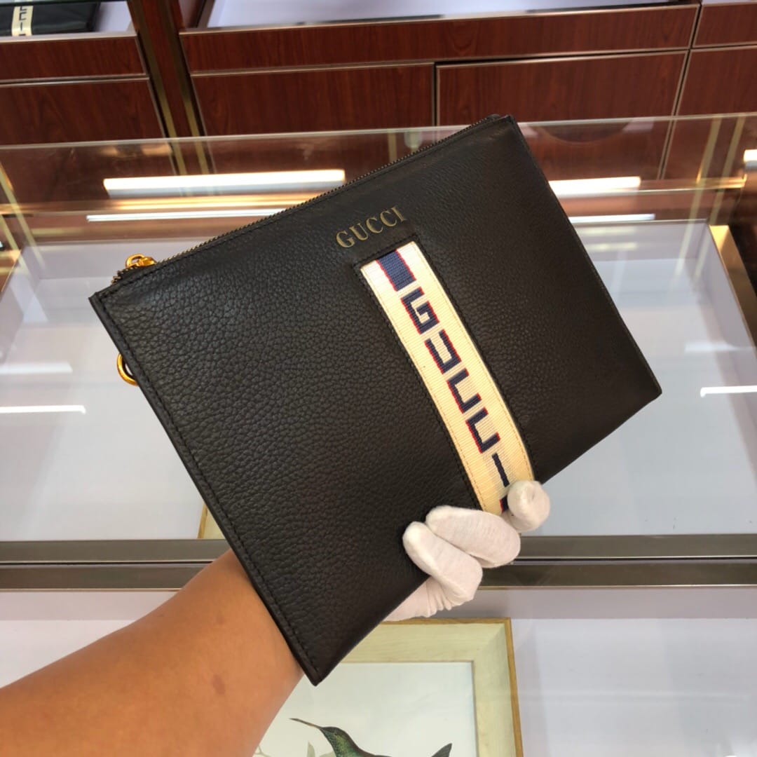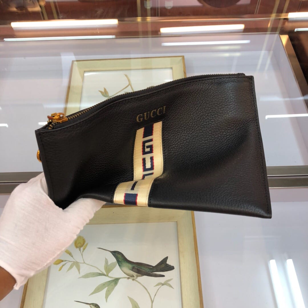 268薄款皮革手拿包,配有可拆卸提手,使用Gucci Sig