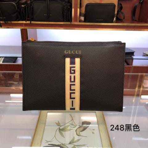 268薄款皮革手拿包,配有可拆卸提手,使用Gucci Sig