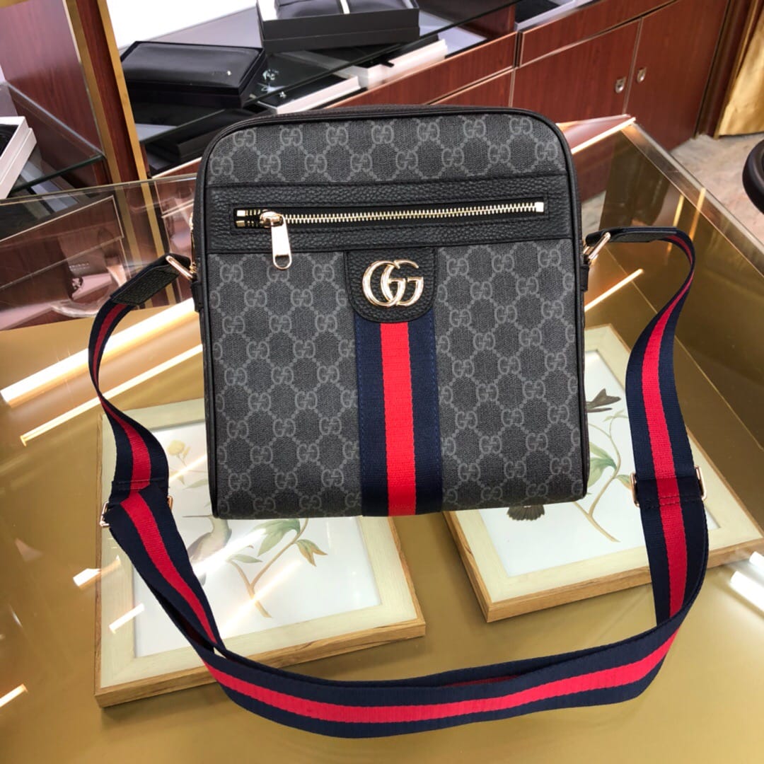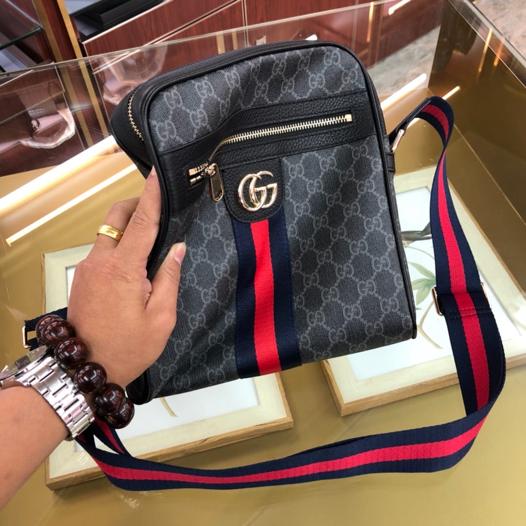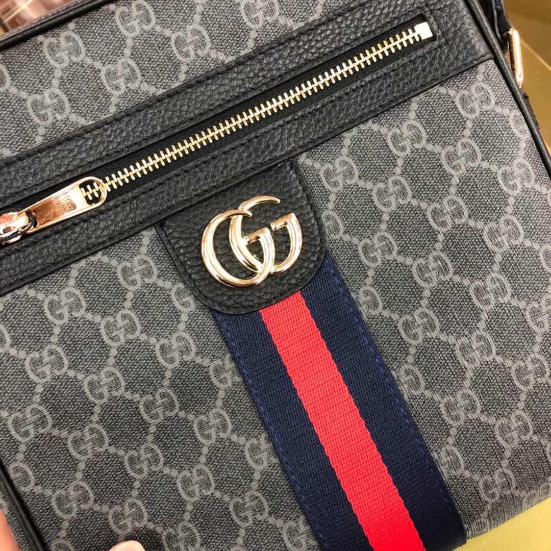 495017黑色pvc黑色配头层牛皮Gucci Signa
