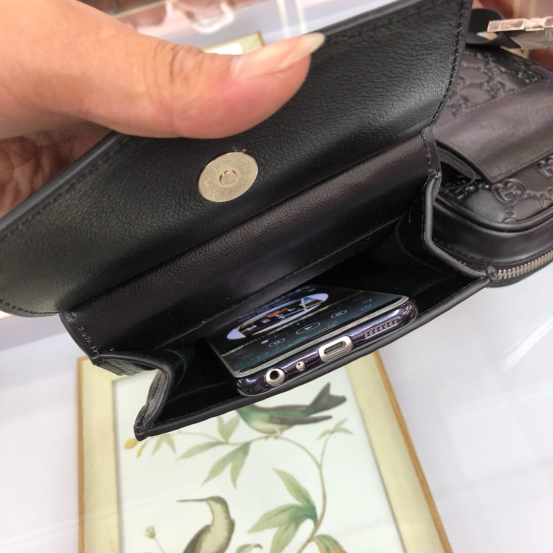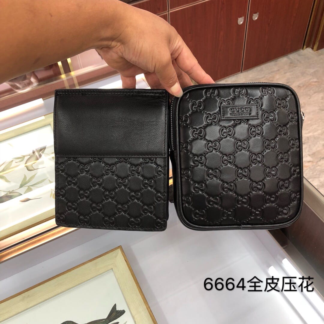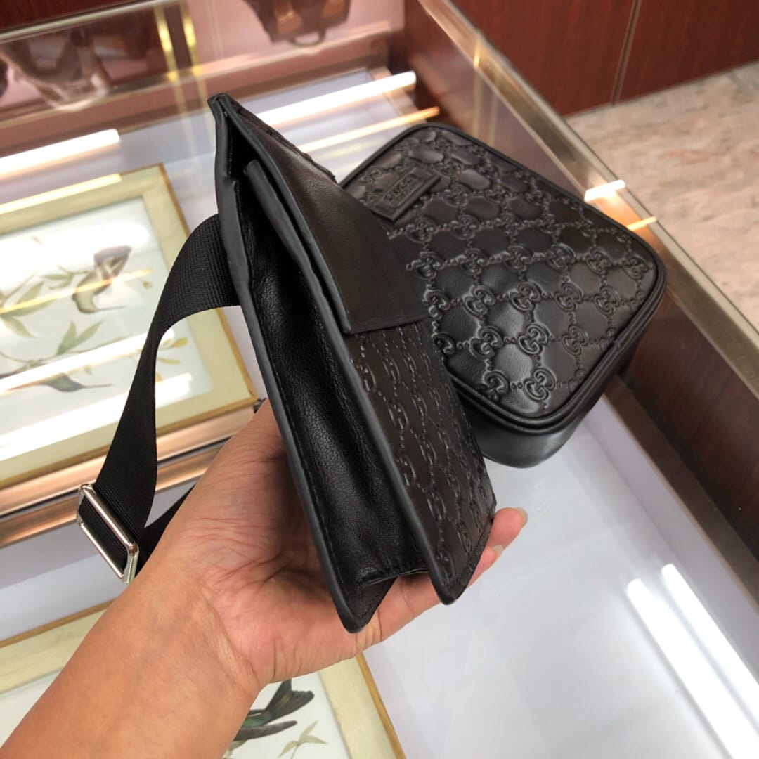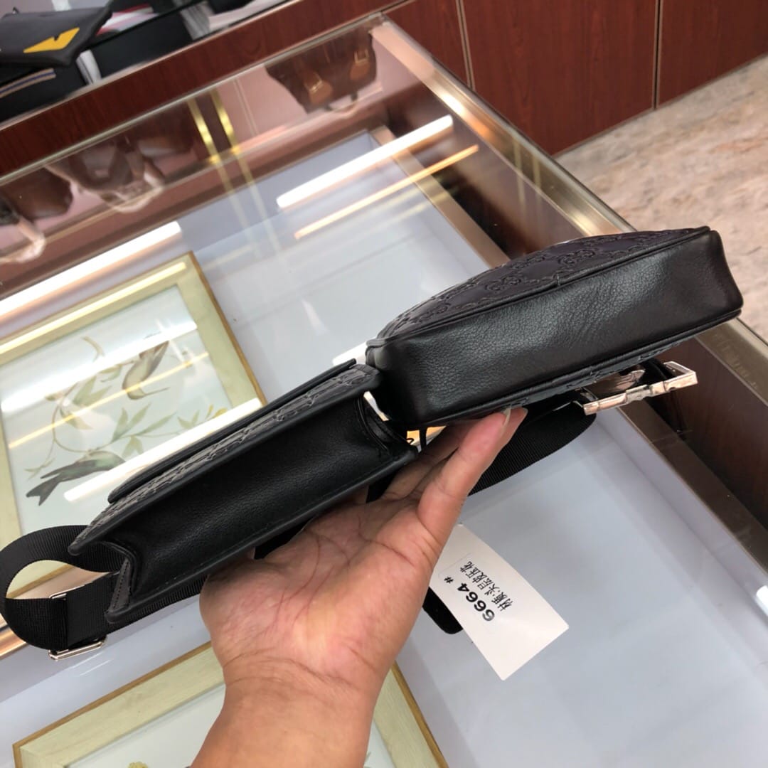 6664黑色头层牛皮Gucci(男女通用腰包胸包款)Sign