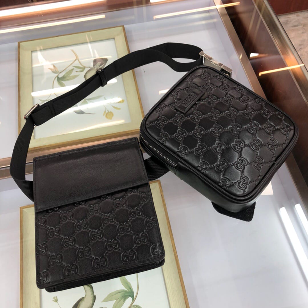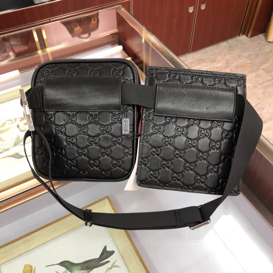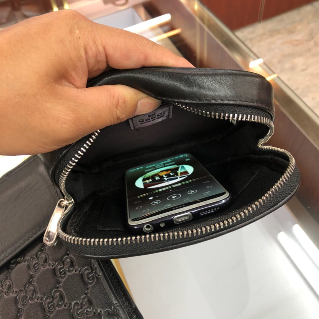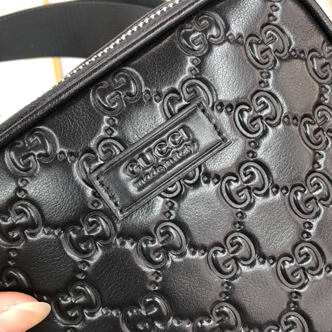 6664黑色头层牛皮Gucci(男女通用腰包胸包款)Sign