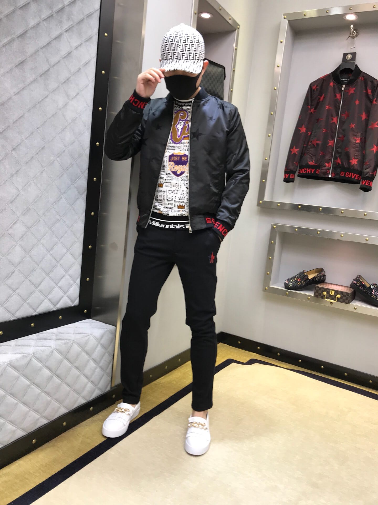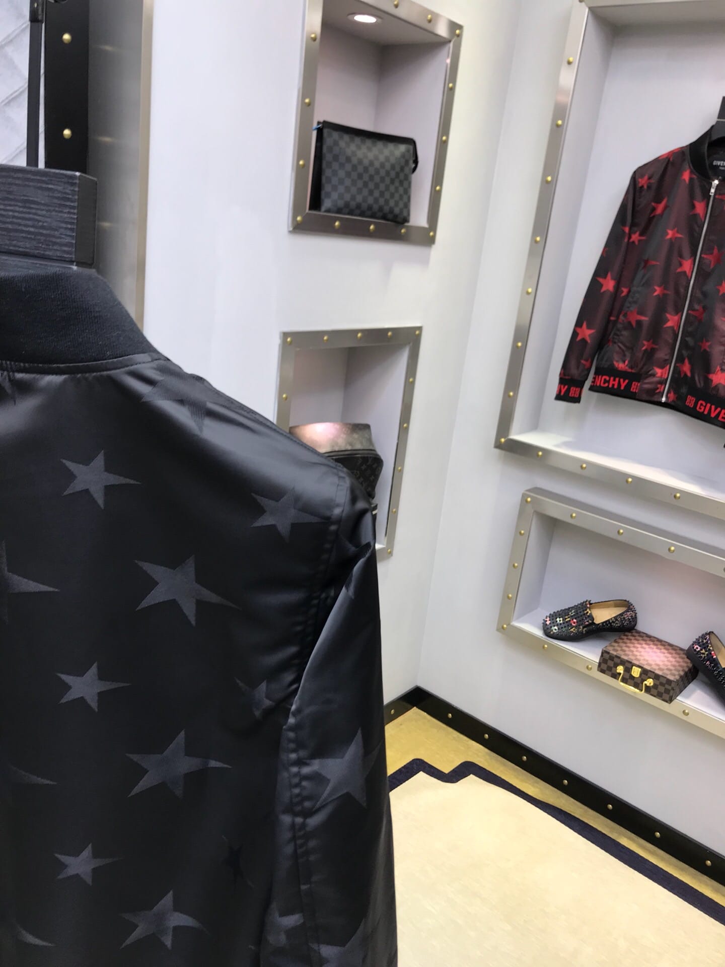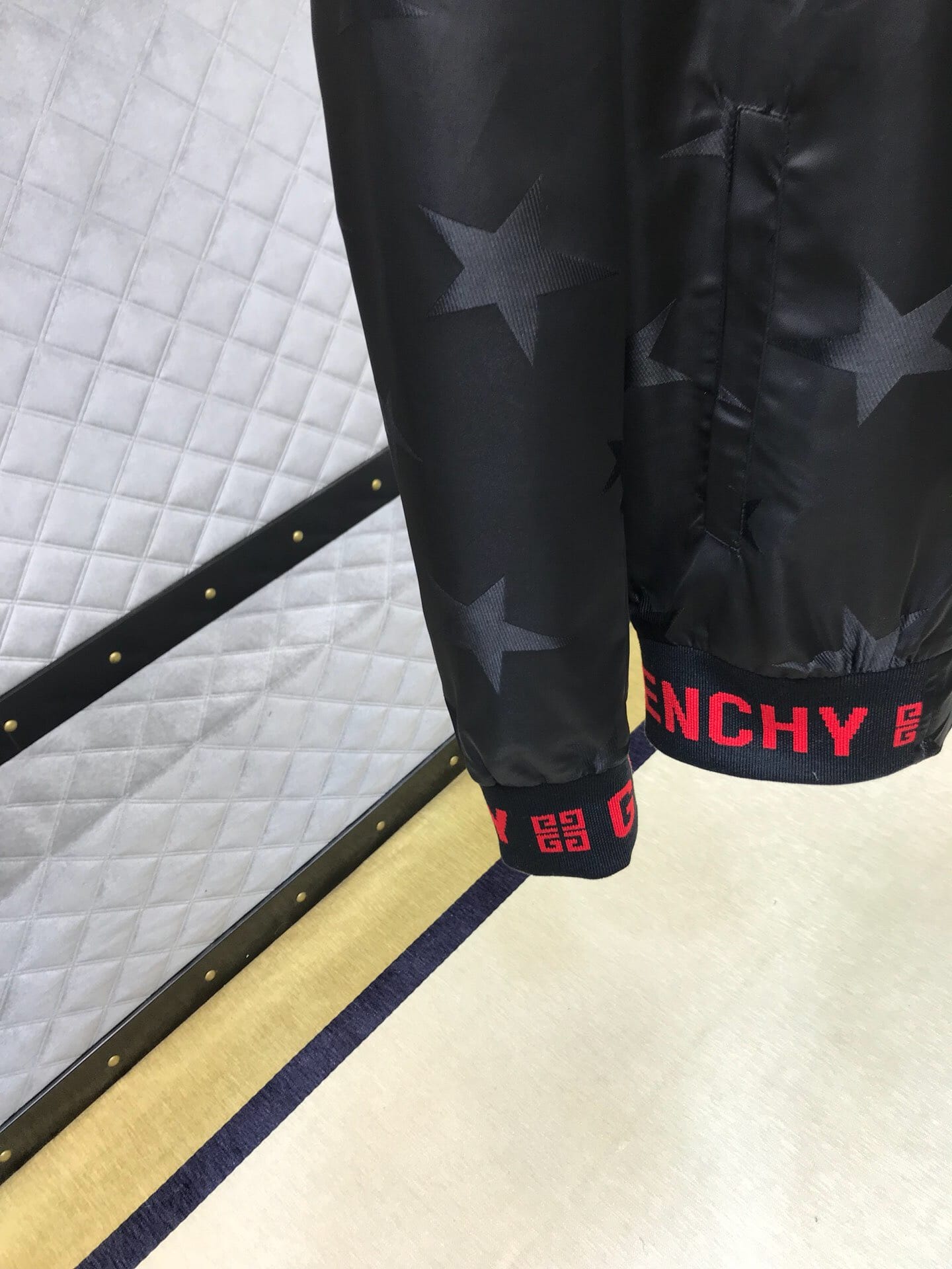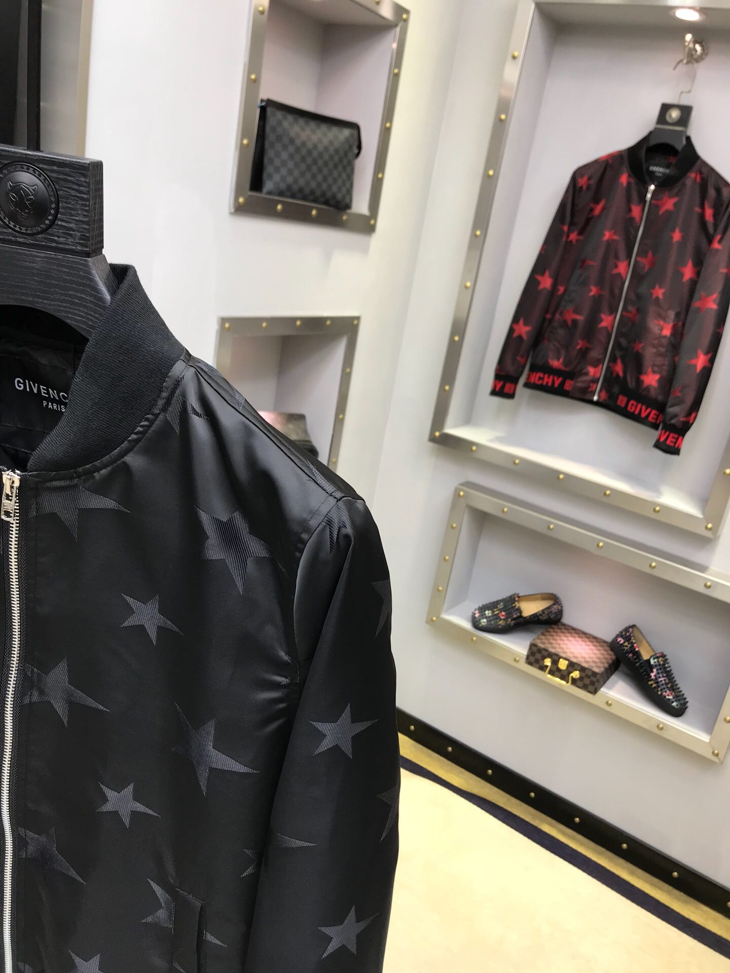 纪梵希 2018官网秋冬系列最新走秀款夹克外套,秀场新品,品相非常完美,专柜高科技面料,色泽饱满诱人,原版五金、全景五角星徽章3D数码印花、撞色螺纹收口设计,极为抢眼!非常出彩的设计,轻松将时髦感进阶,做工极为考究严谨,走线工整细致!原版五金,大牌设计师巨作!上身超级时尚帅气!柜台码数:M-3XL