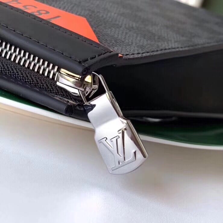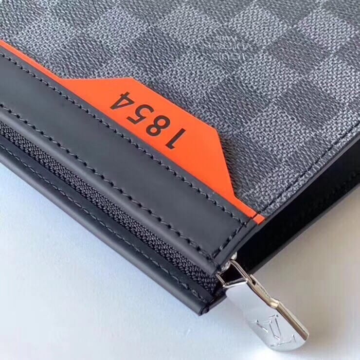 (配全套密封包装+官网二维码贴纸+乐天全套发票)1854!32660350 Pochette Voyage款由全新标志性黑灰Monogram Eclipse帆布裁制而成,此款风格硬朗的全新中号手袋可轻松收纳个人必备物品尺寸:26x20x5cm。