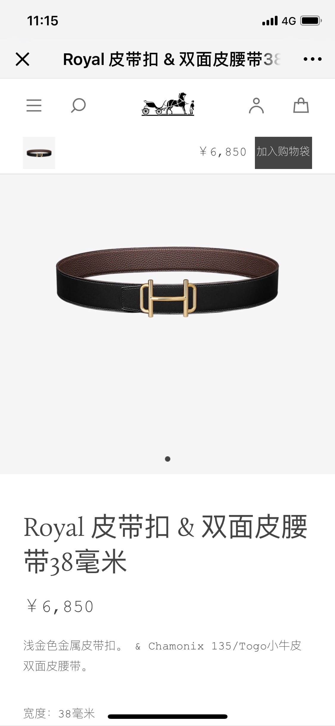 意大利??制造 爱马仕最新款男士皮带 38mm宽 爱马仕专柜