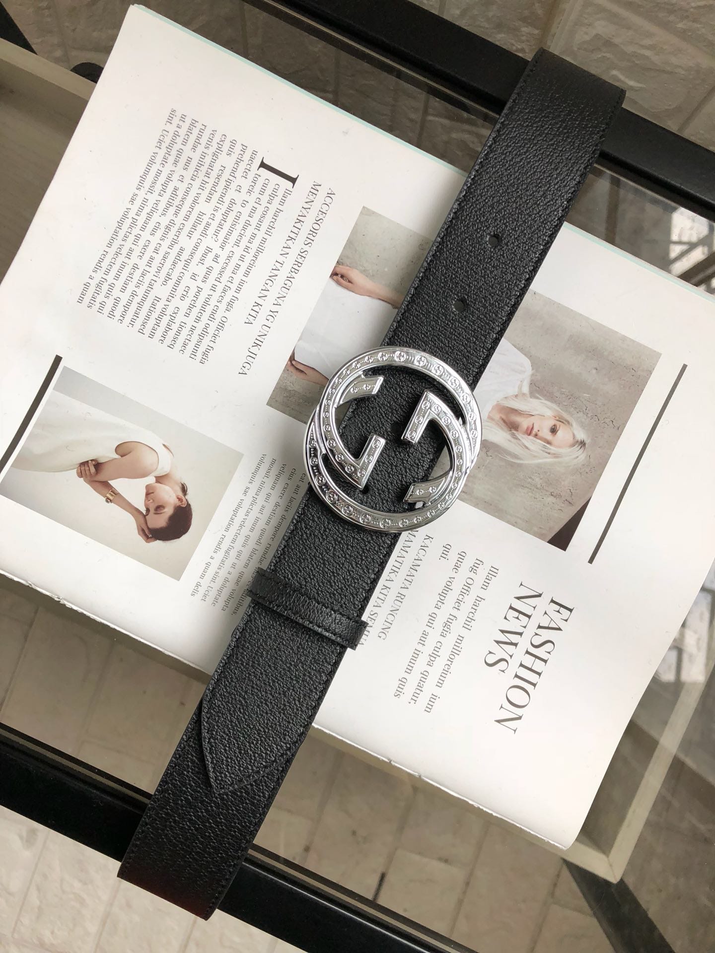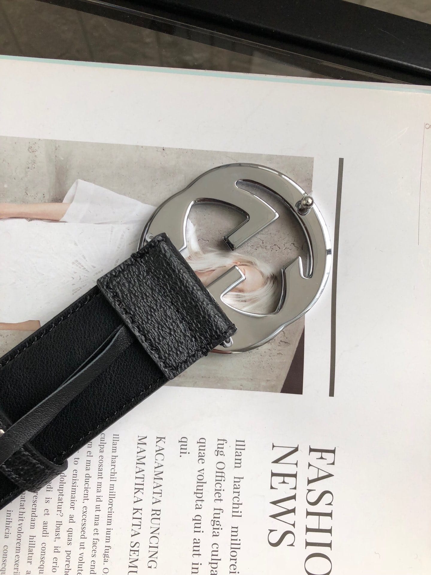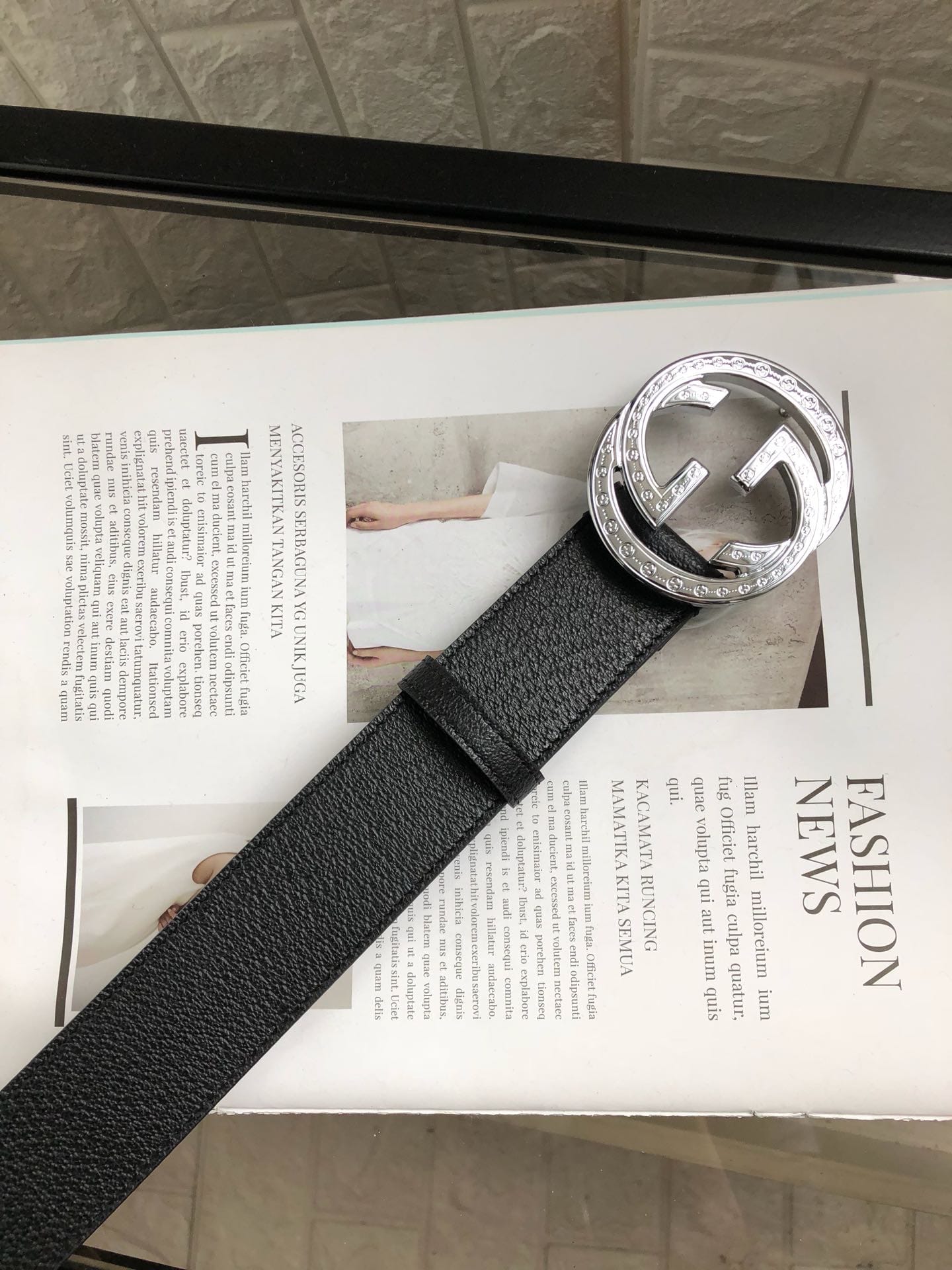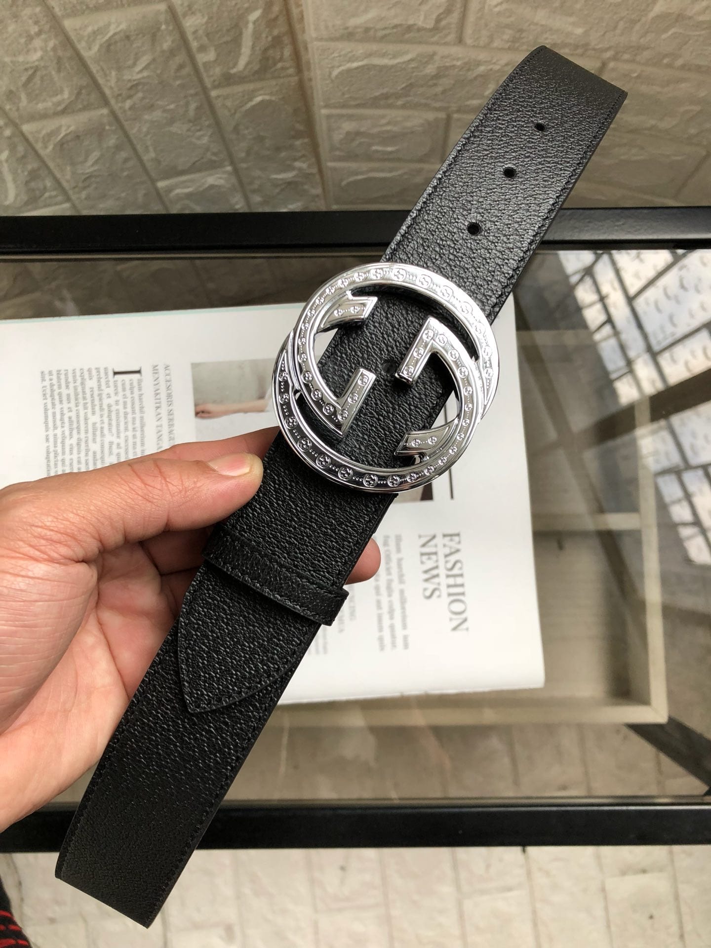 {古驰}原单头层小牛皮腰带采用热压制作,以获得野猪皮效果?内衬平纹牛皮底,营造织纹外观。饰以标志单G带扣。专柜宽度3.8cm