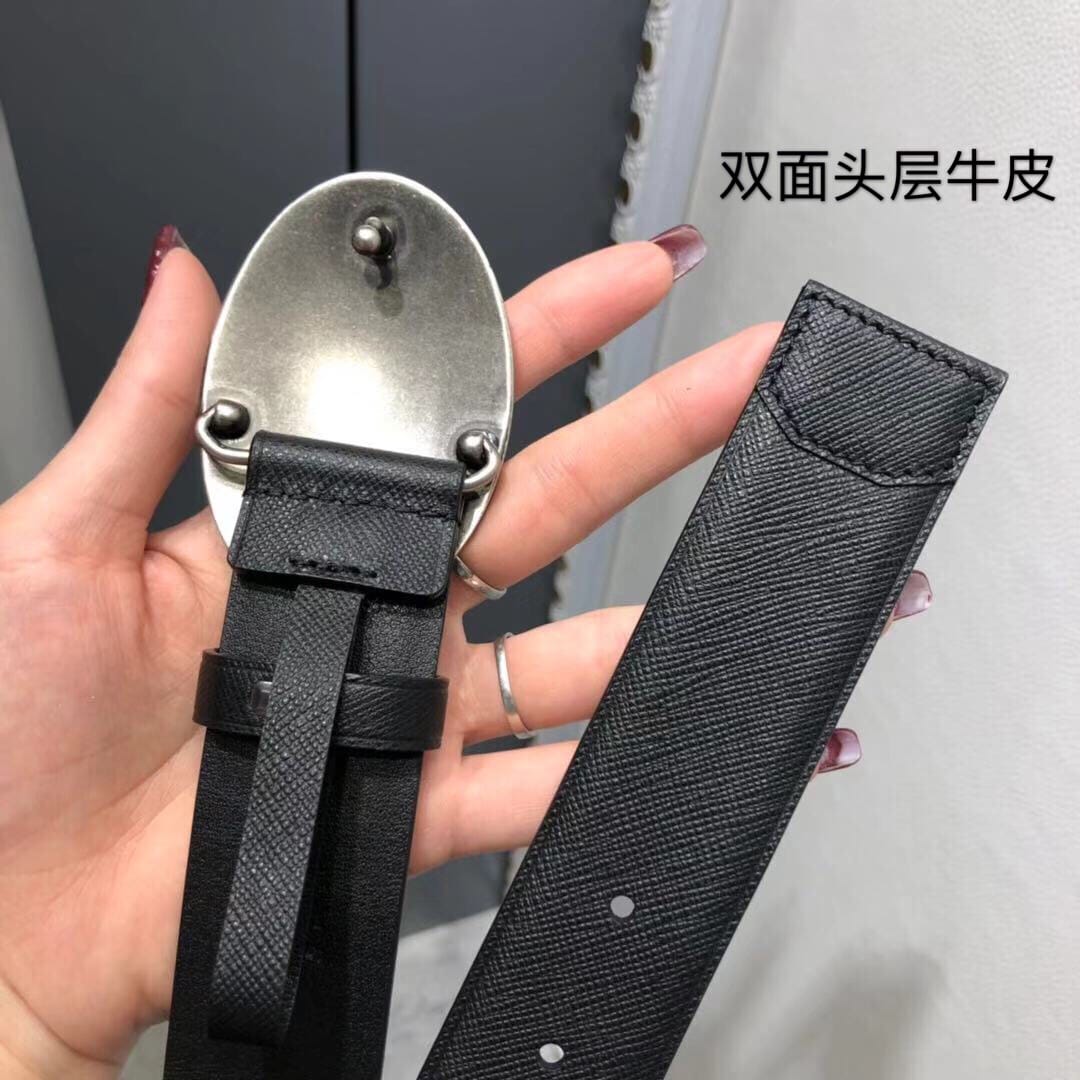 {巴利}专柜同款 双面用?男士黑色压纹小牛皮腰带宽35毫米,