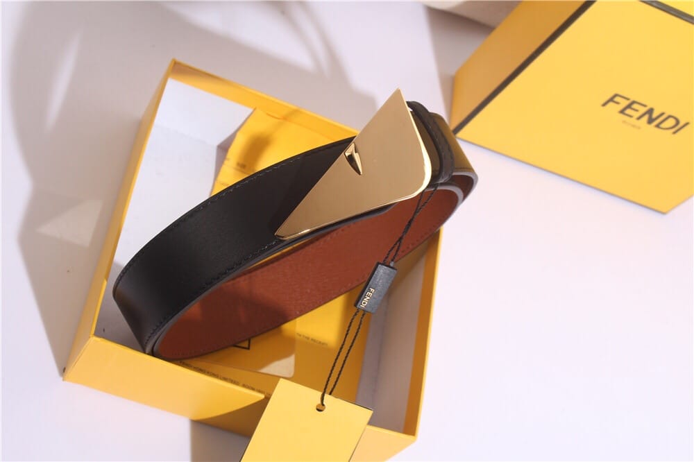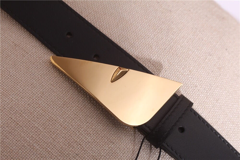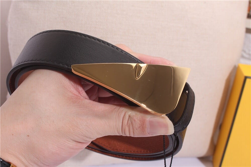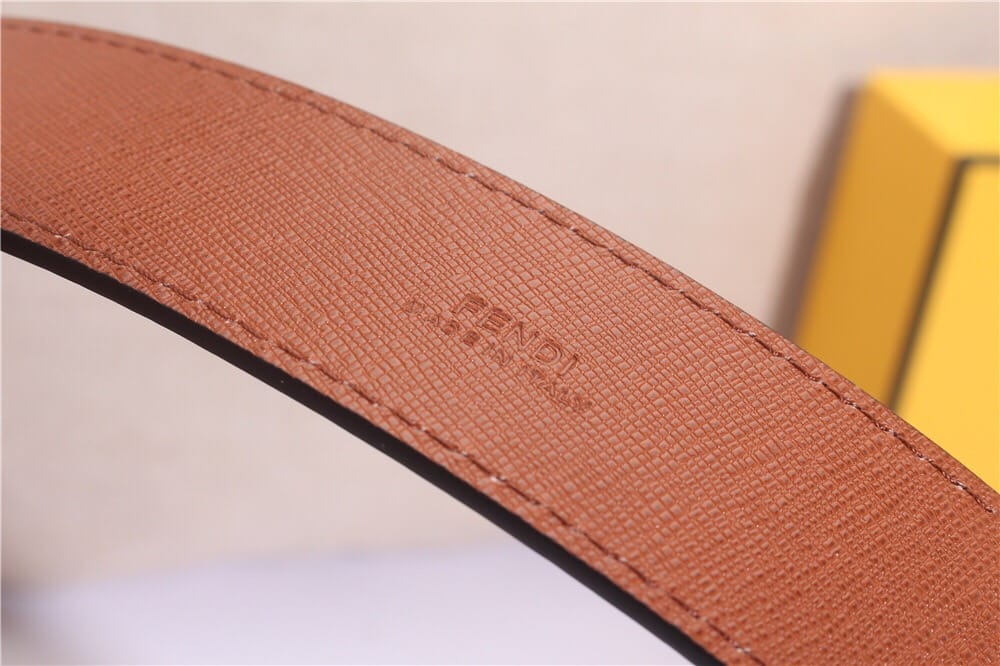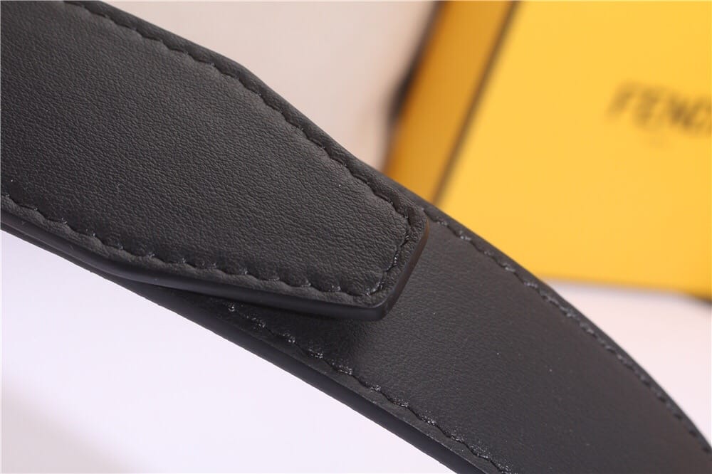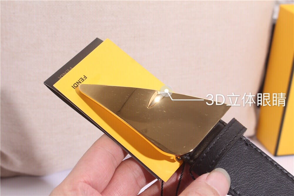 {FNEDI}专柜最新款 老佛爷怪兽系列 双面用腰带,手感舒适,长方形珐琅金属带扣 装饰BAG BUGS眼睛造型和镀钯细节,双皮质扣环与皮带一致?宽度:3.5mm