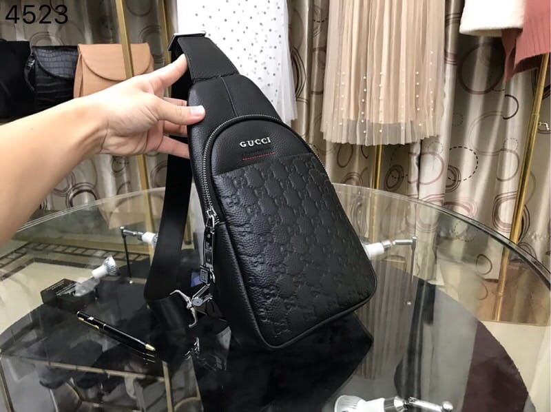 古奇男士胸包?爆款 ?专柜同步,原版质量,高端面料! ?意大利进口布料,?欢迎对比?高雅的造型,秉承严谨考究的工艺,精美耐用?男人用的包,品质决定品味 ?型号 4523?规格:30X18X6CM