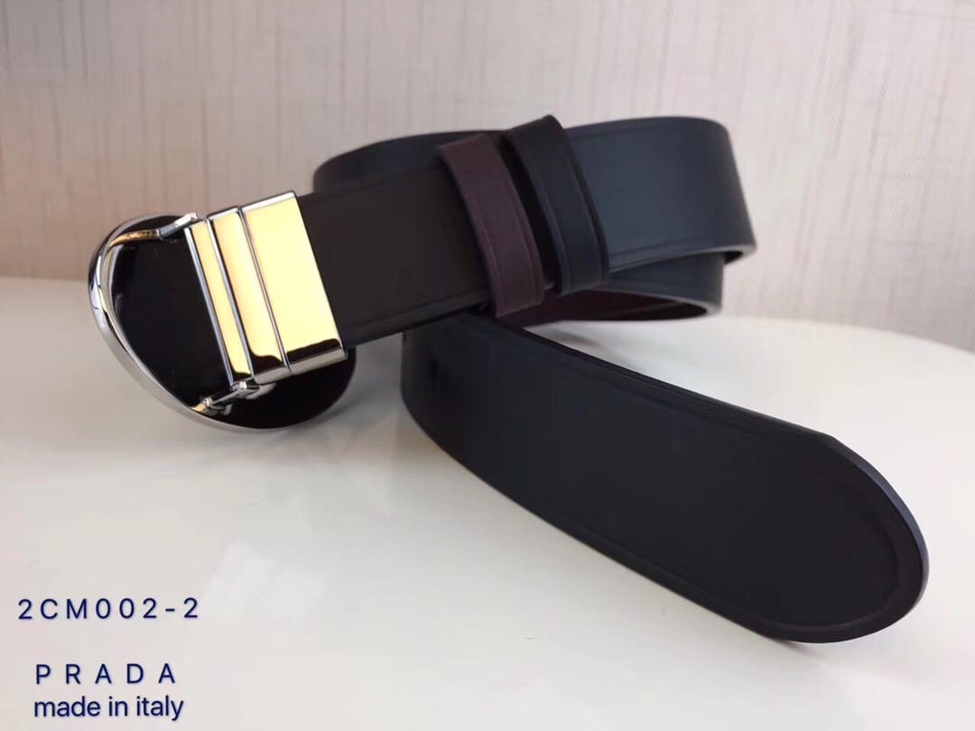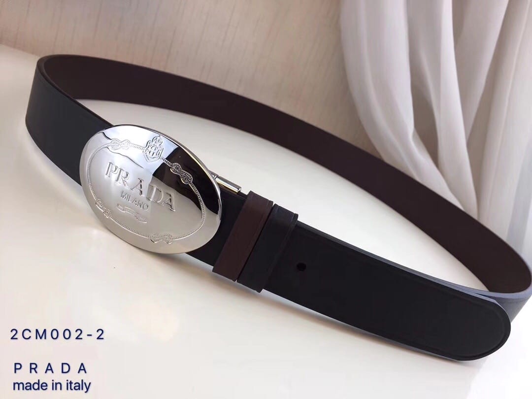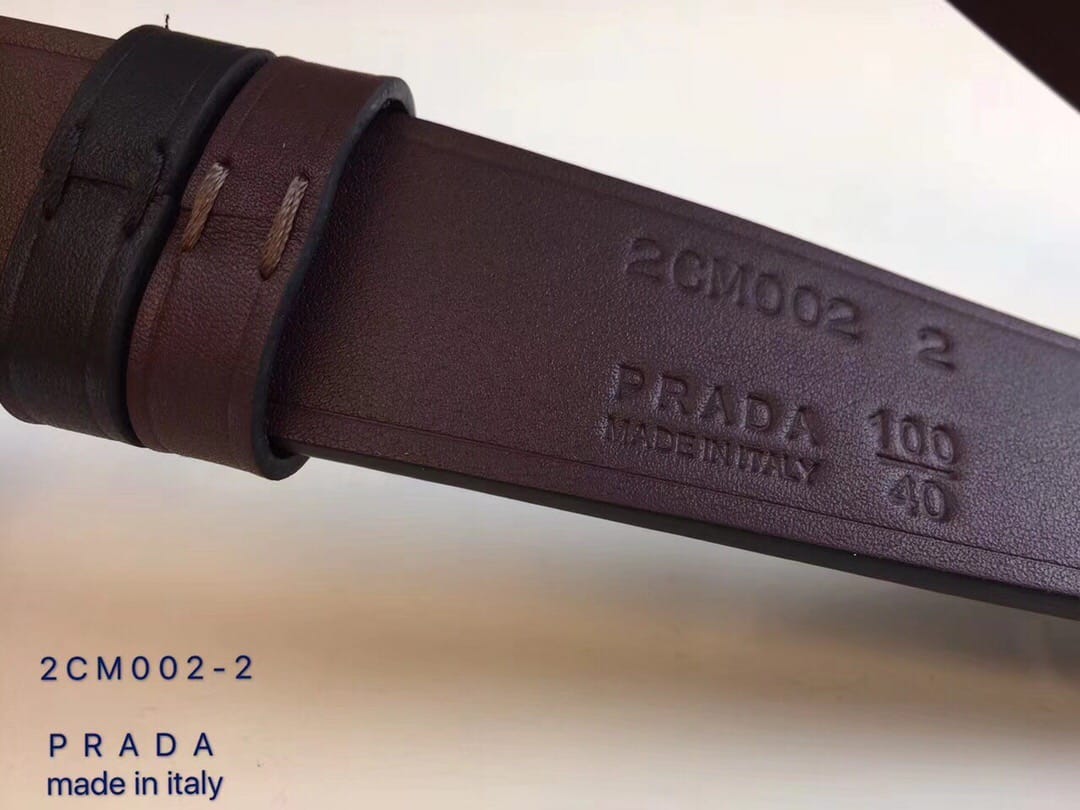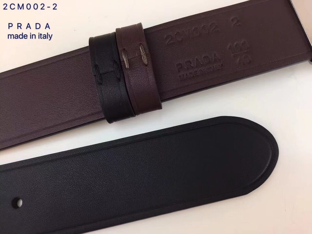 {普拉达}男士皮带黑色乌木色牛皮双面压线 旋转板扣 进口全粒面牛皮 ?宽度:34MM