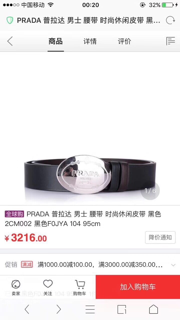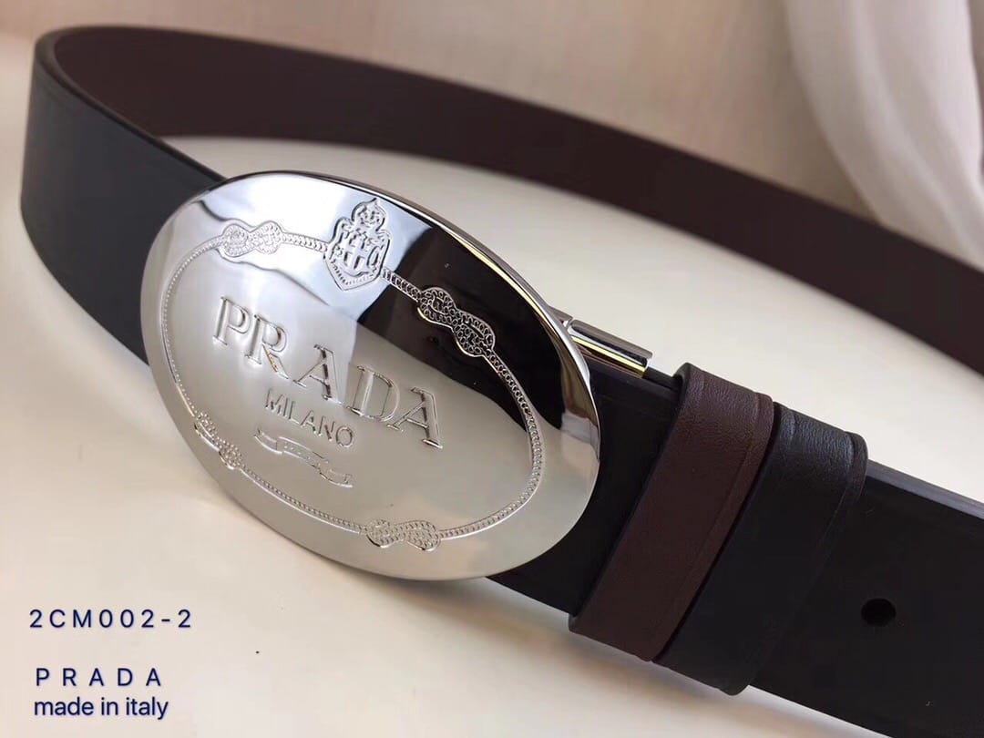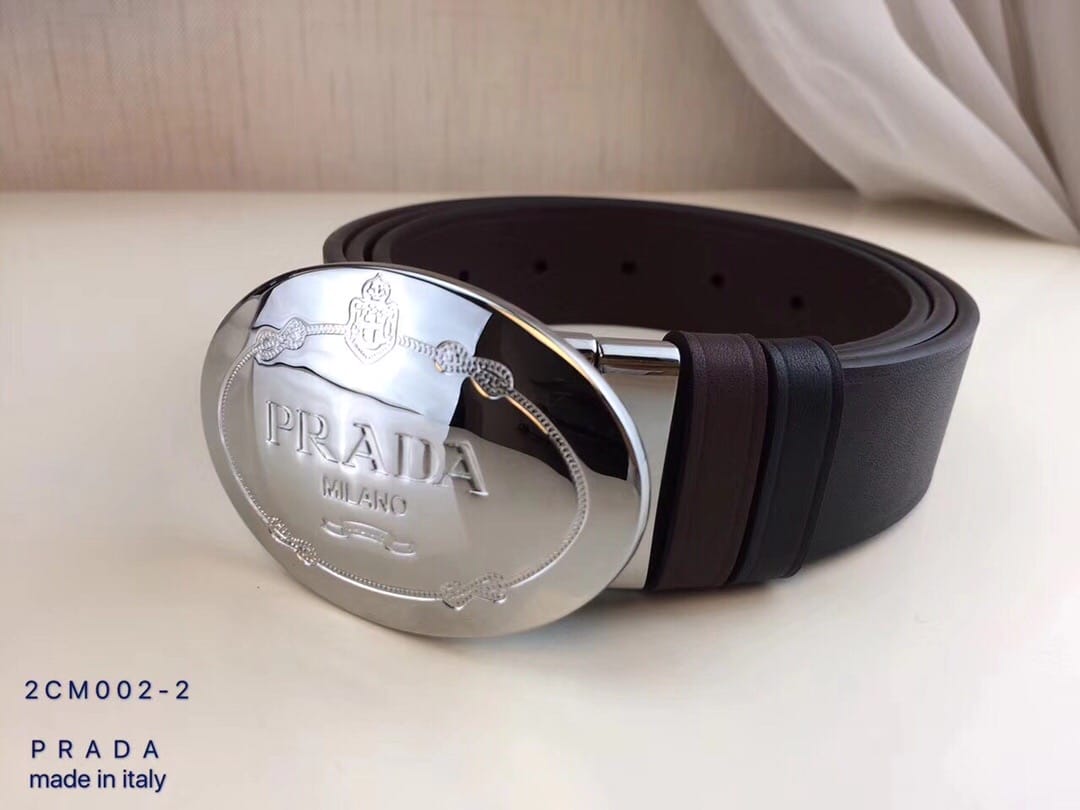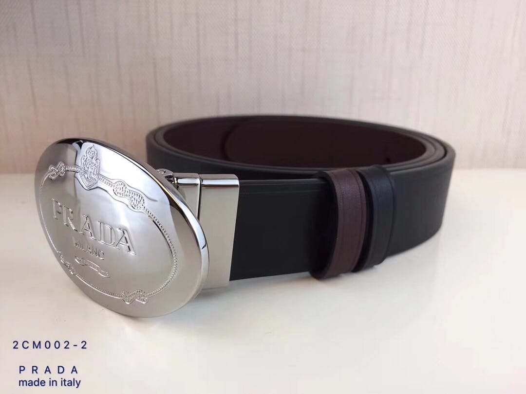 {普拉达}男士皮带黑色乌木色牛皮双面压线 旋转板扣 进口全粒面牛皮 ?宽度:34MM