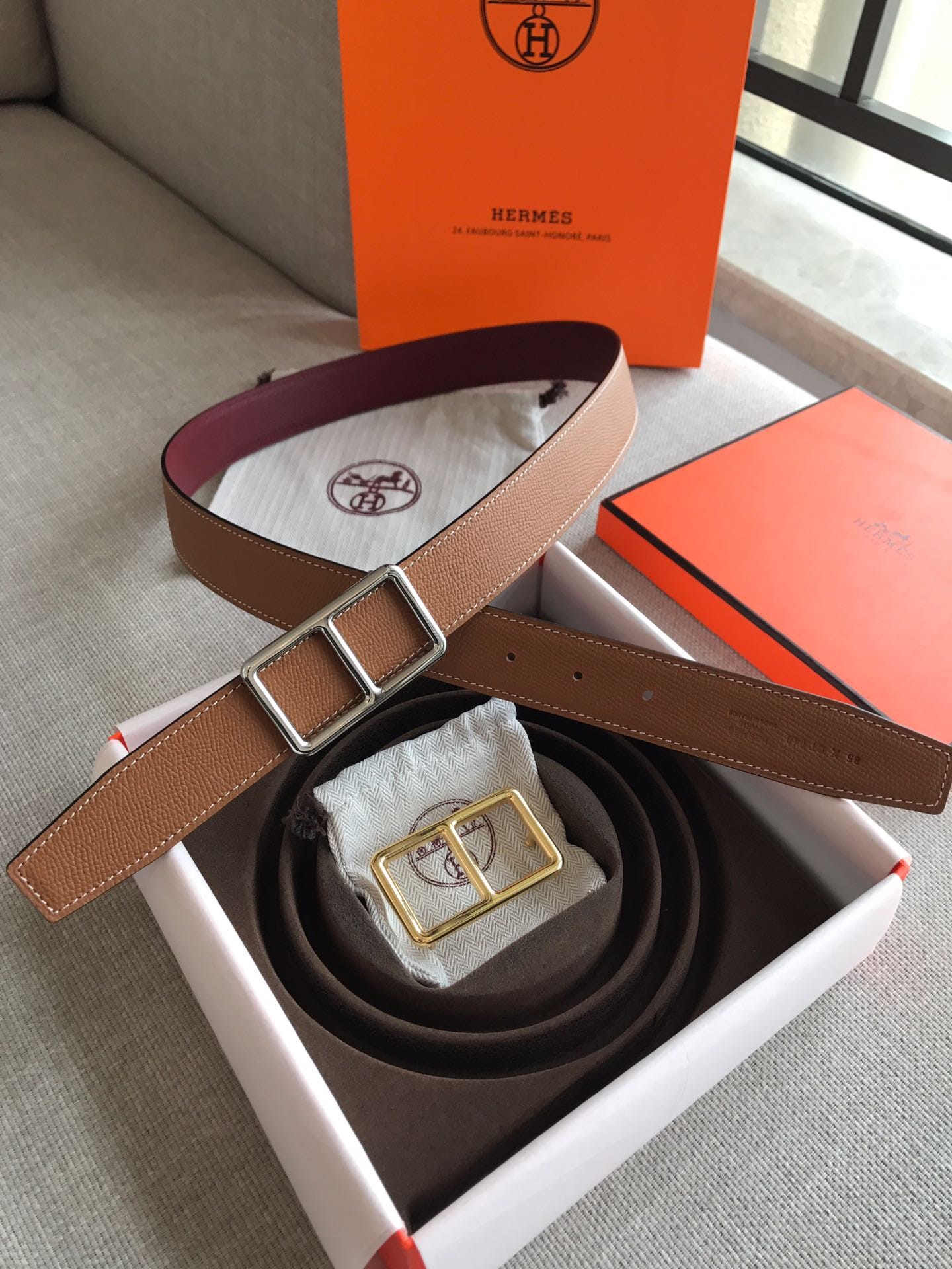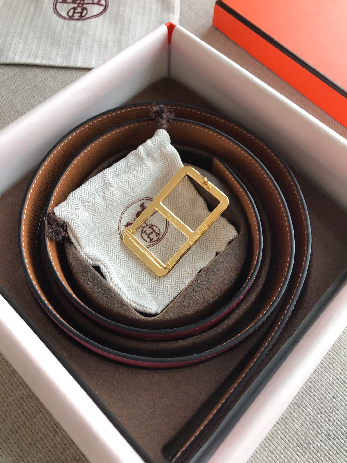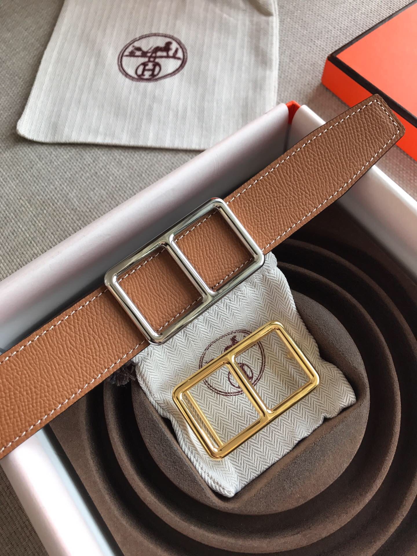 {爱马仕}男士皮带!双面小牛皮,进口夹心 精钢五金?宽度:3