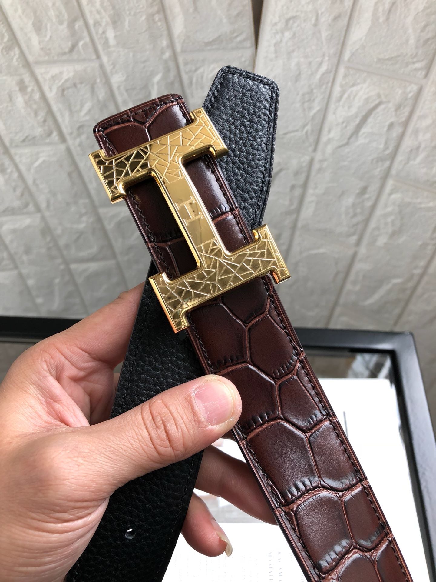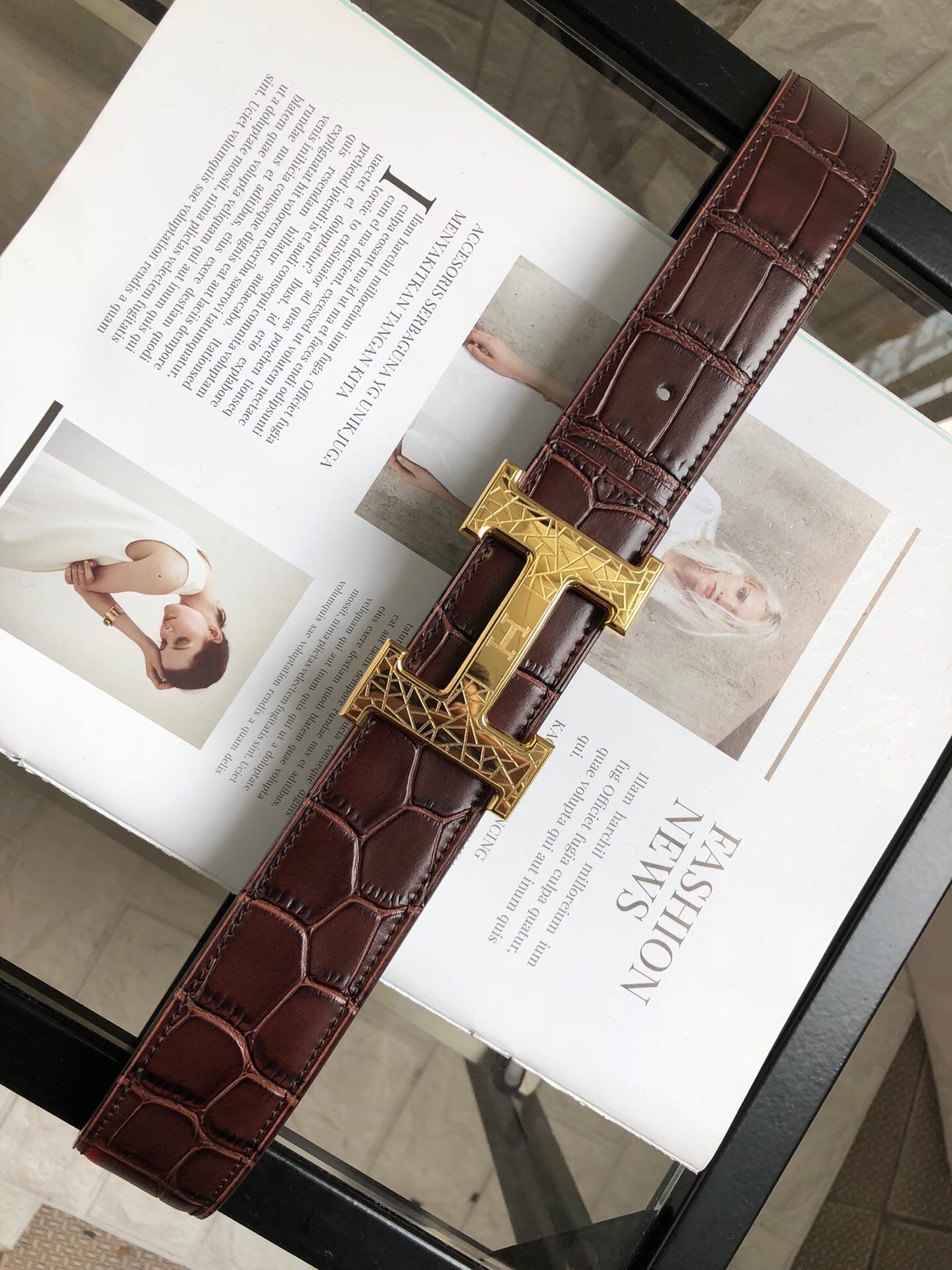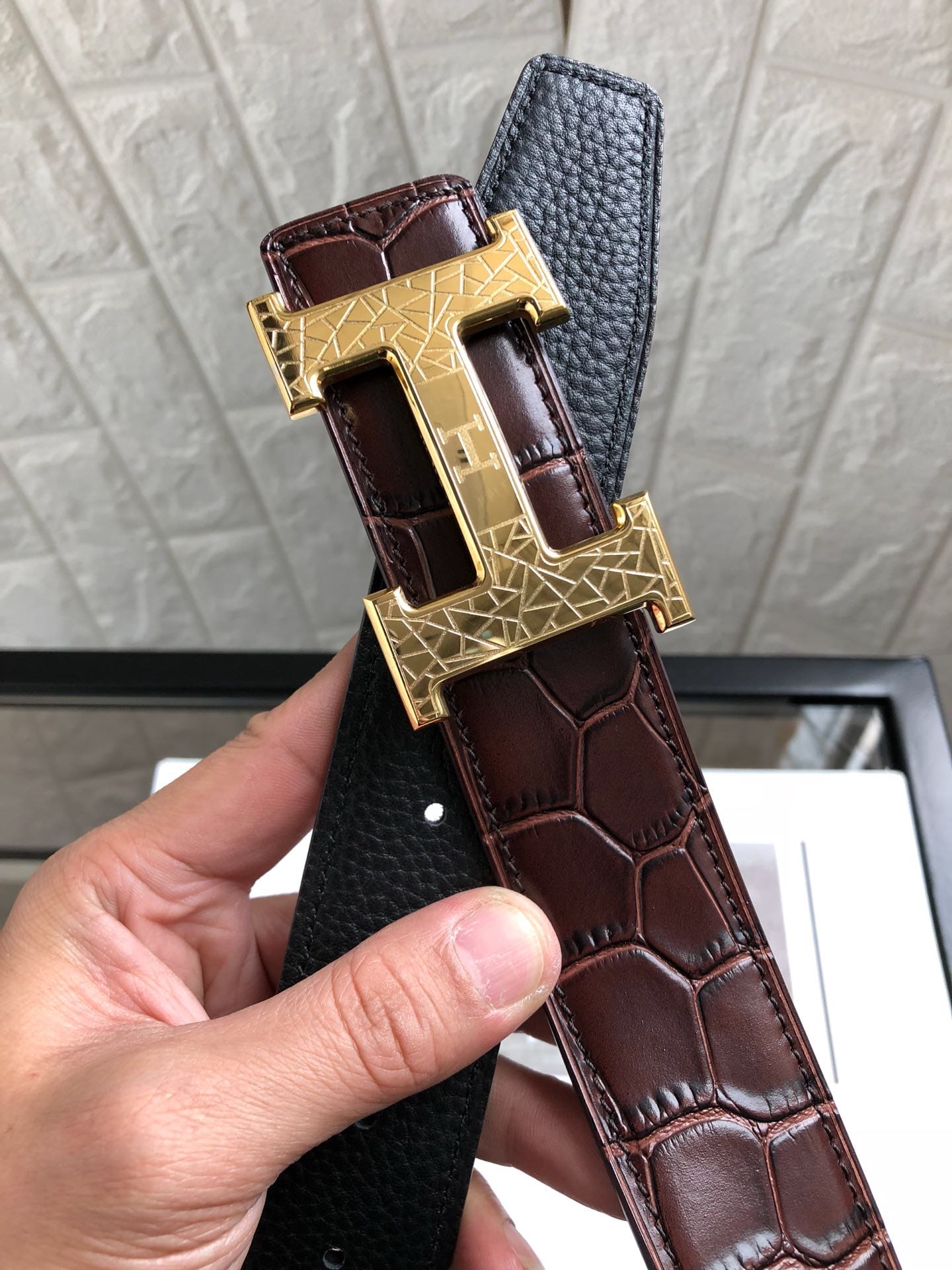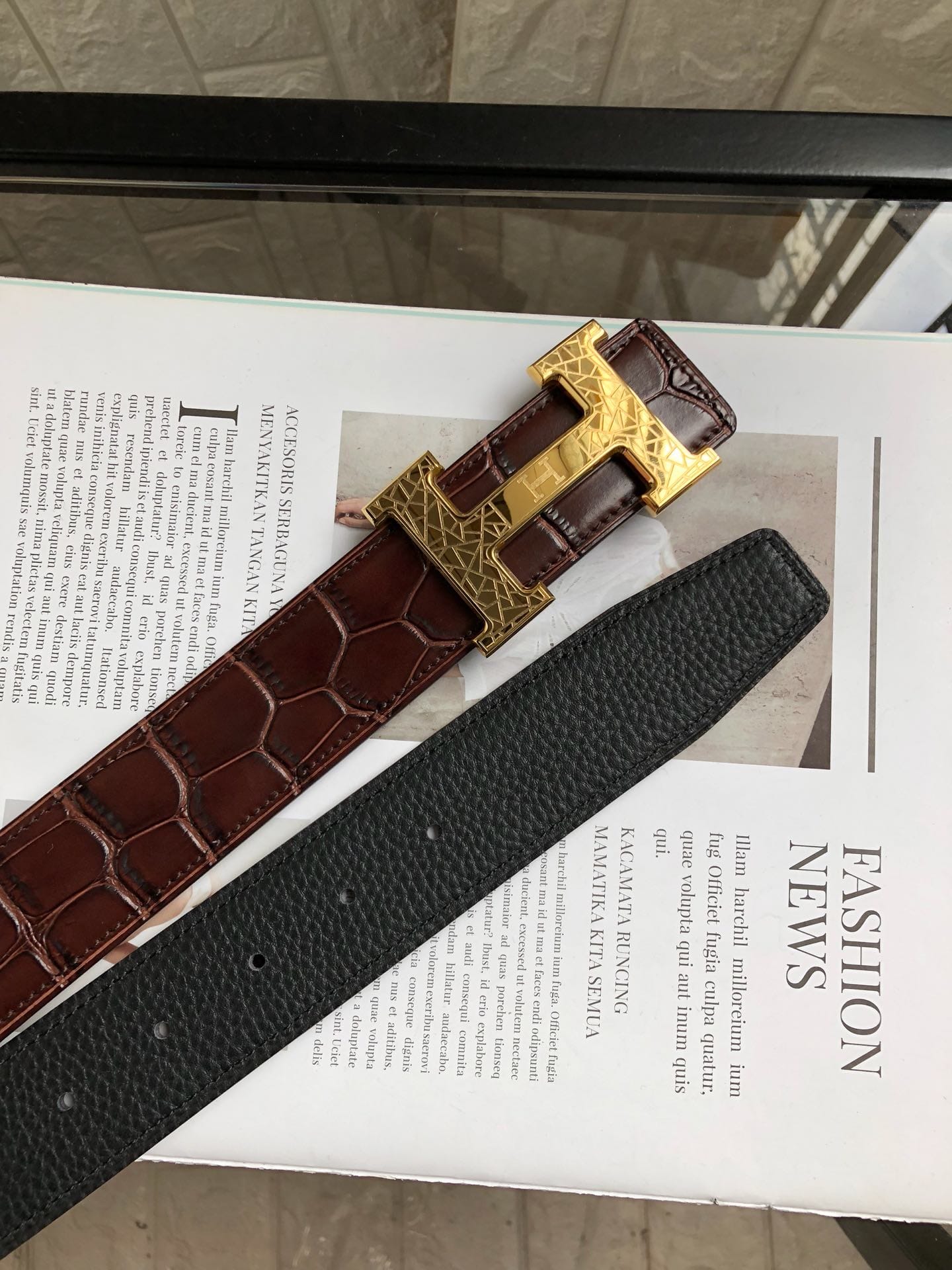 {爱玛仕}男士皮带?头层牛皮石头纹面:内衬头层牛皮荔枝纹底.正反两面可用.搭配原单扣,原产皮料定制,专柜宽度3.8cm