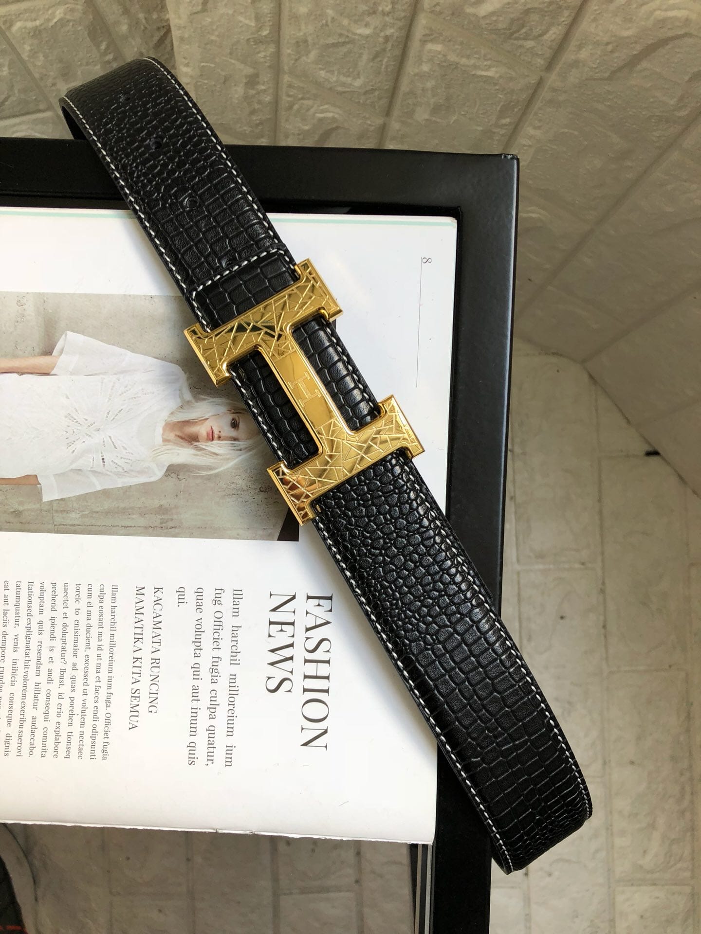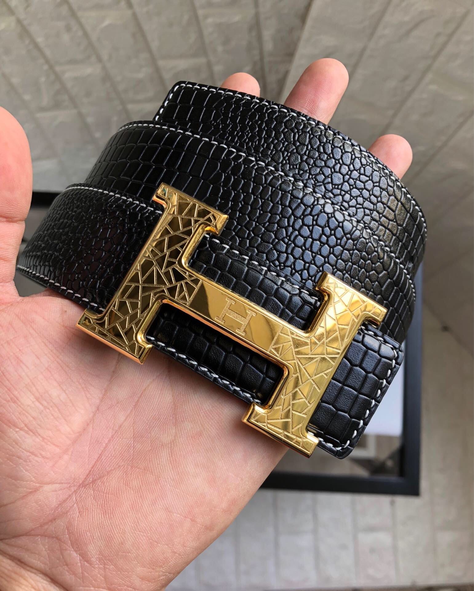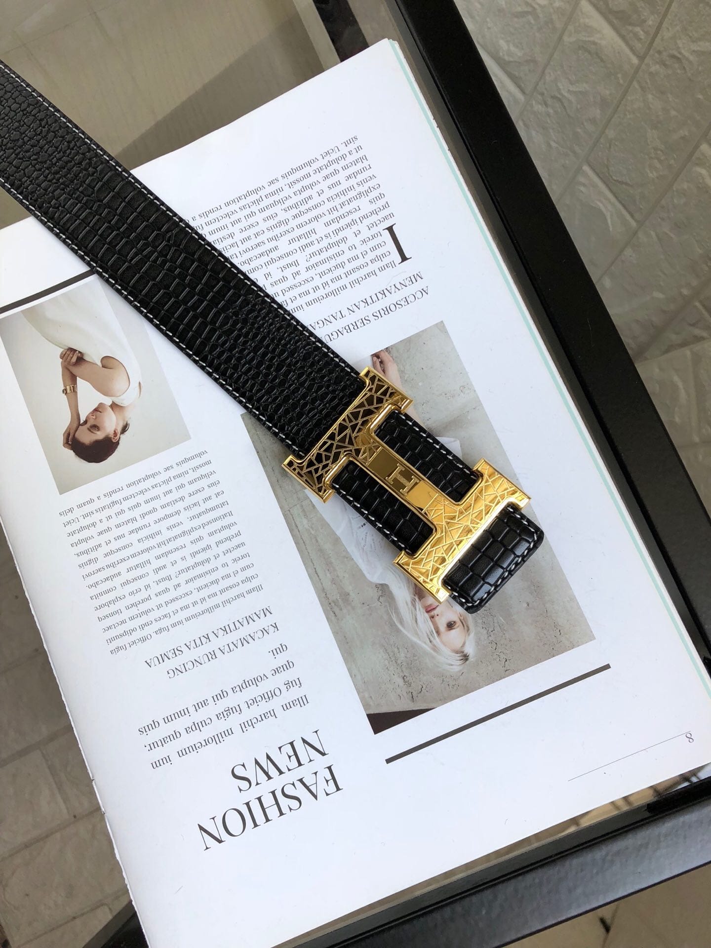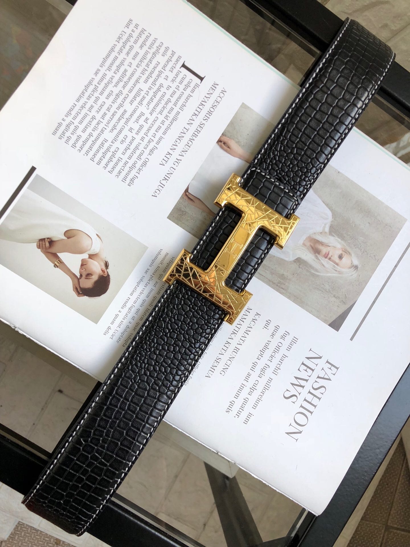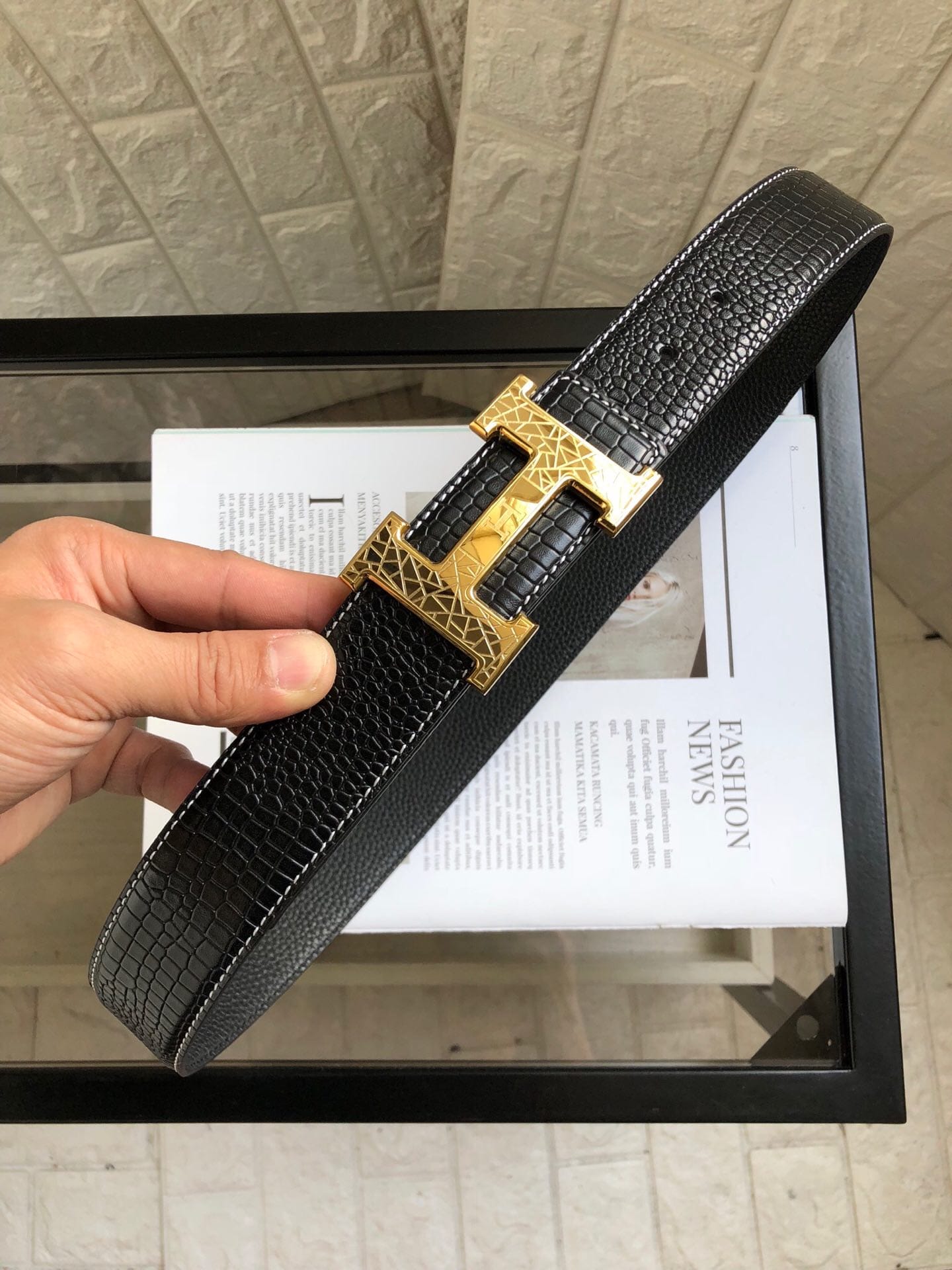 {爱玛仕}男士皮带?头层牛皮蜥蜴纹面:内衬头层牛皮荔枝纹底.正反两面可用.搭配原单扣,原产皮料定制,专柜宽度3.8cm