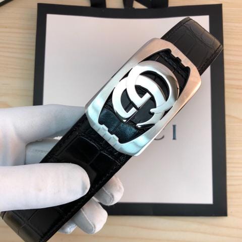 {古驰}男士皮带?头层牛皮鳄鱼纹面:内衬头层牛皮荔枝纹底.正