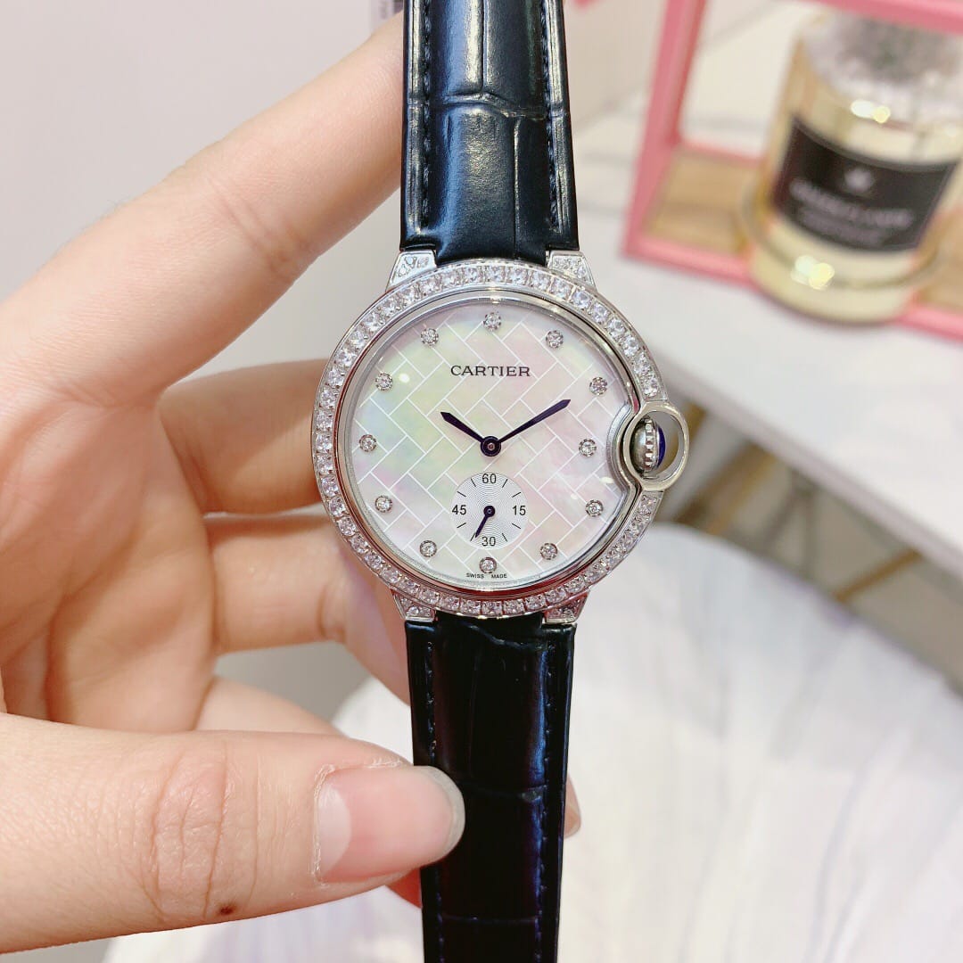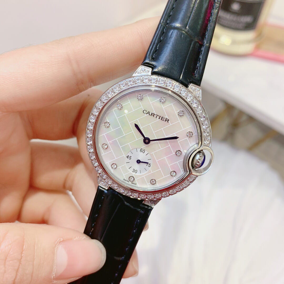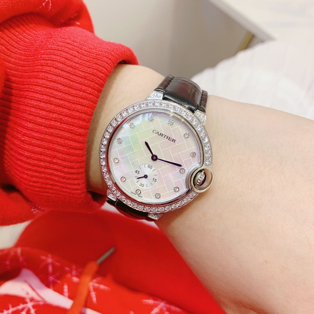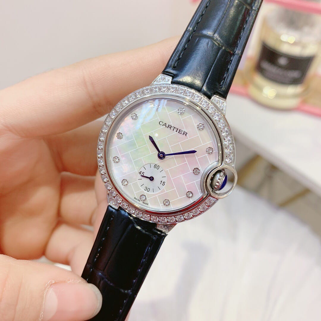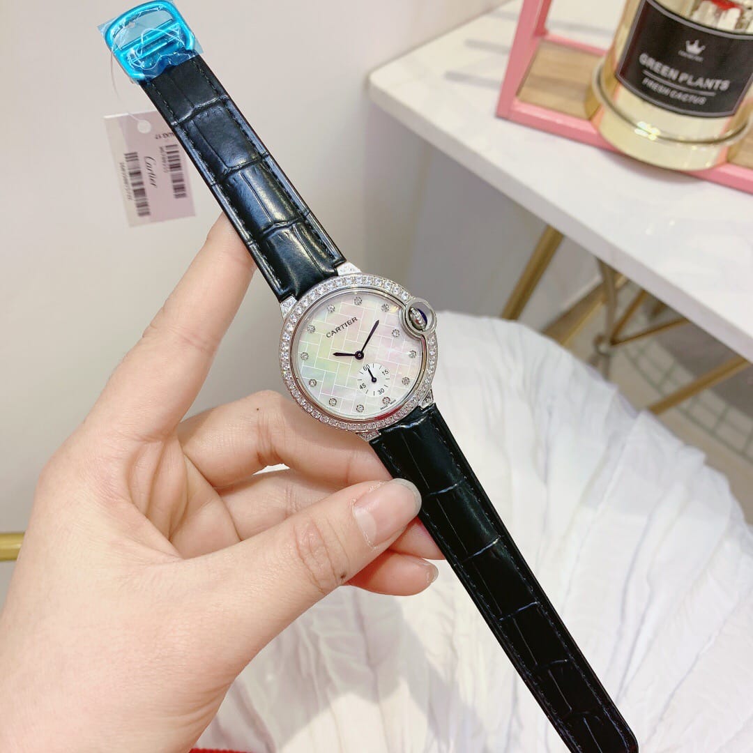 卡地亚蓝气球系列,两针半石英腕表,珍珠贝壳面,原装蝴蝶扣,尺