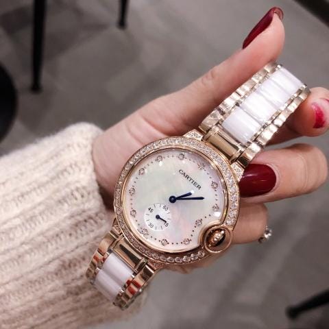 卡地亚蓝气球系列,两针半石英腕表,珍珠贝壳面,原装蝴蝶扣,