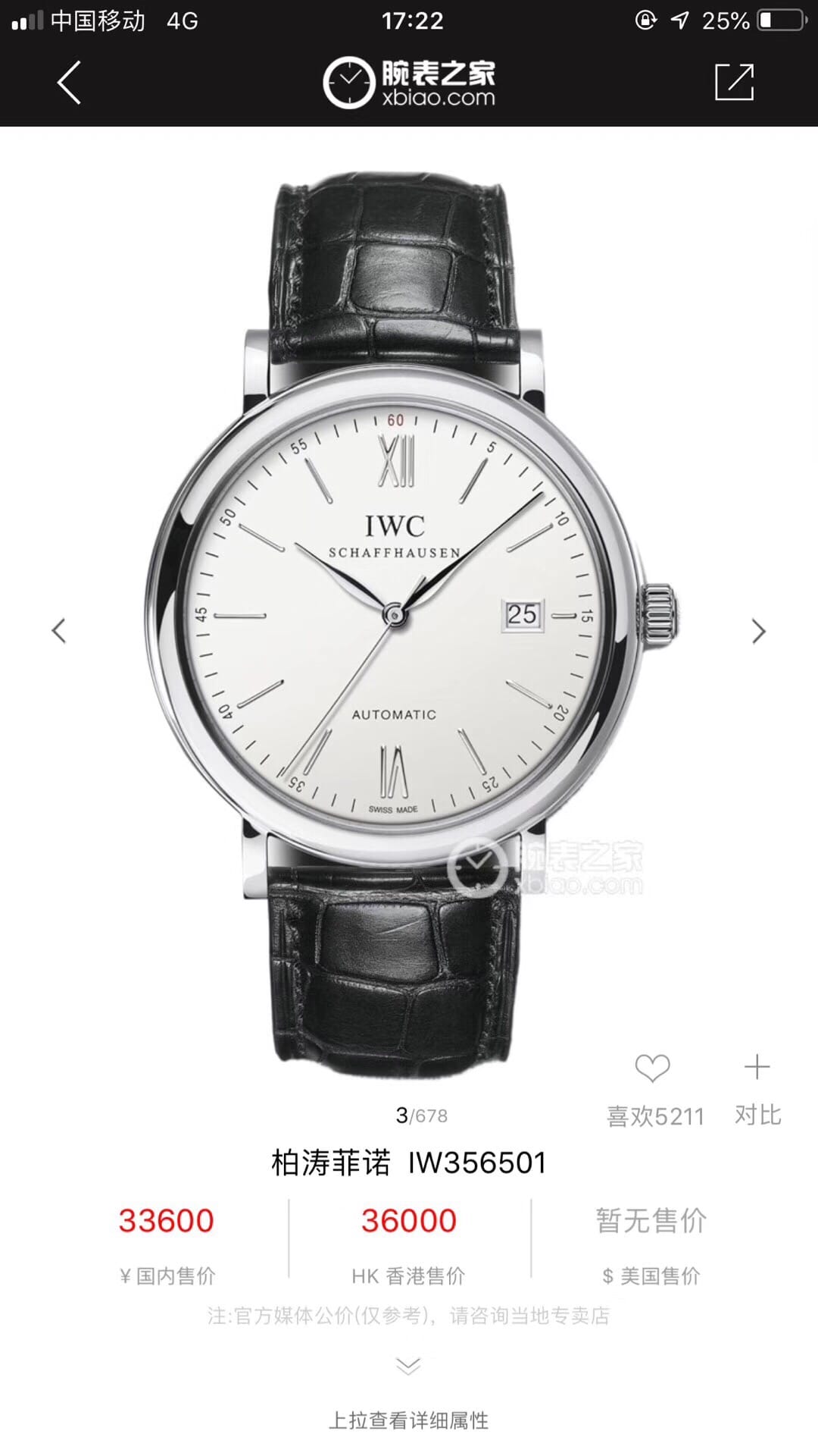 IWC万国 葡萄牙系列 自动机械计时跑秒腕表3714 IW3