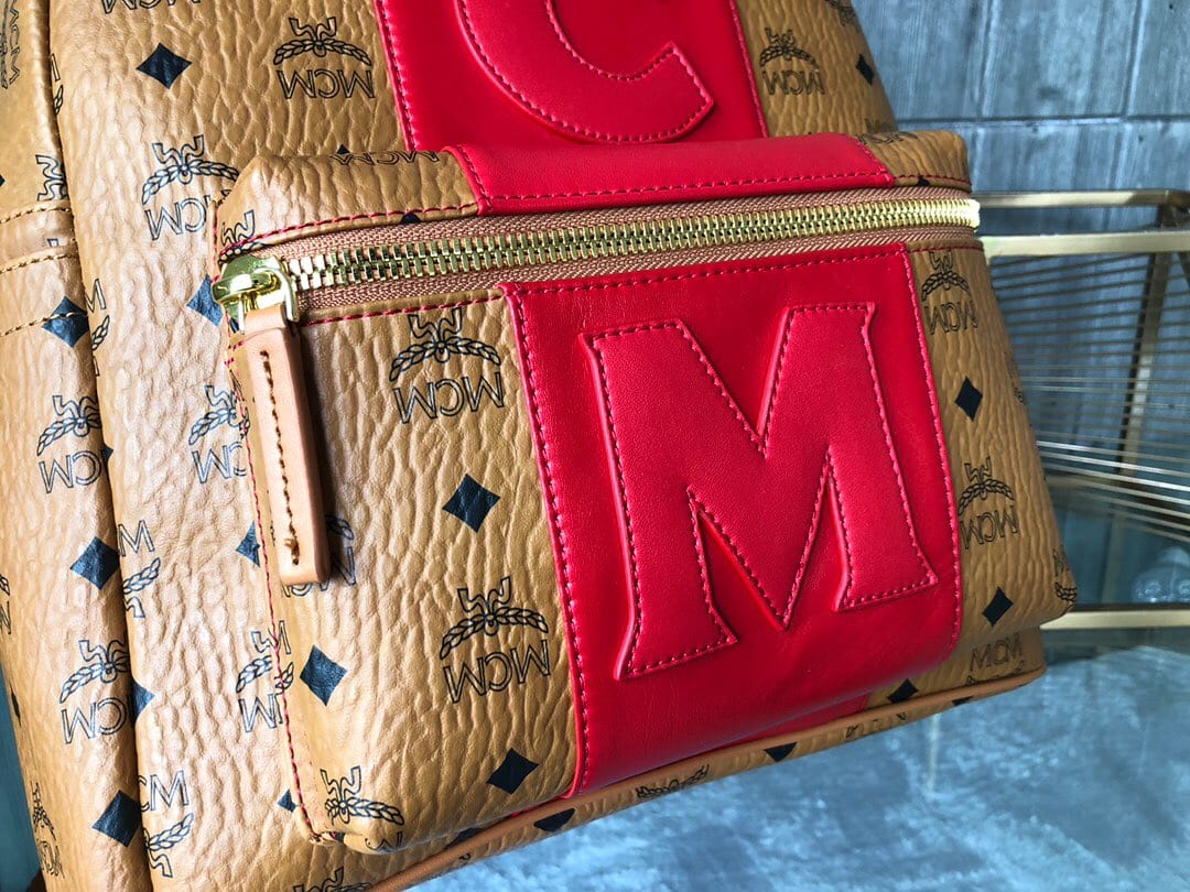 经过手工缝饰和边缘彩绘,皮革字母与中间撞色条纹形成鲜明对比