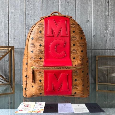 Mania logo背包。顶部有弧状手柄??双向拉链、金色五