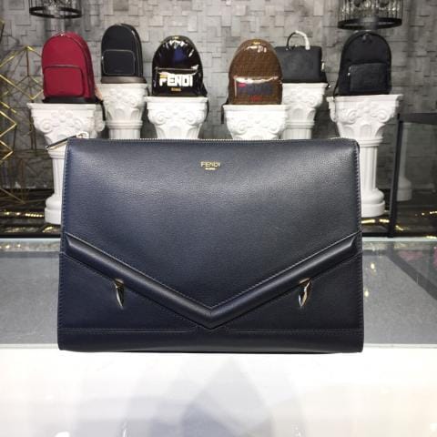手拿包。修长拉链小口袋??黑色小牛皮材质?饰以凸印贴花和形似