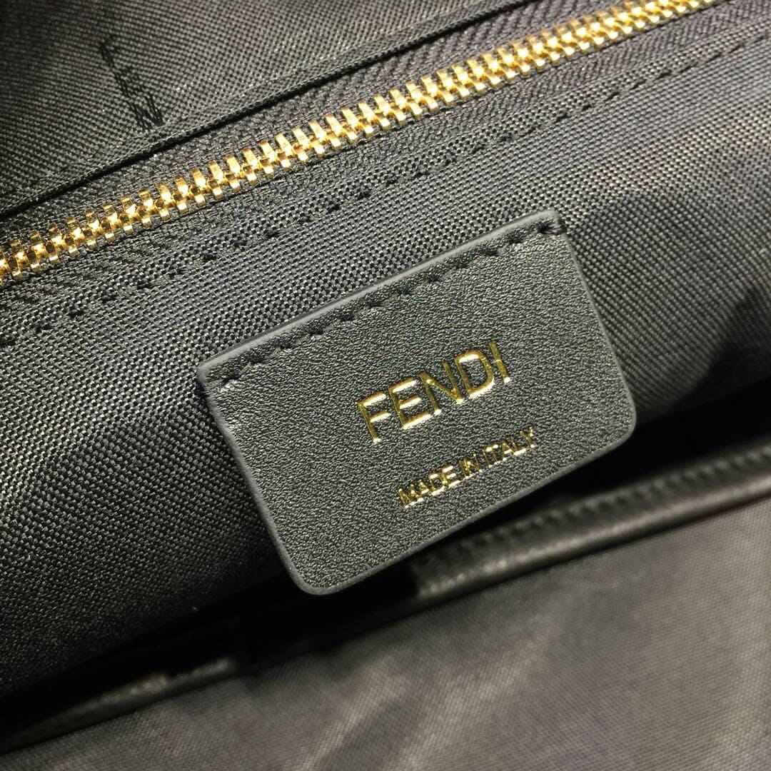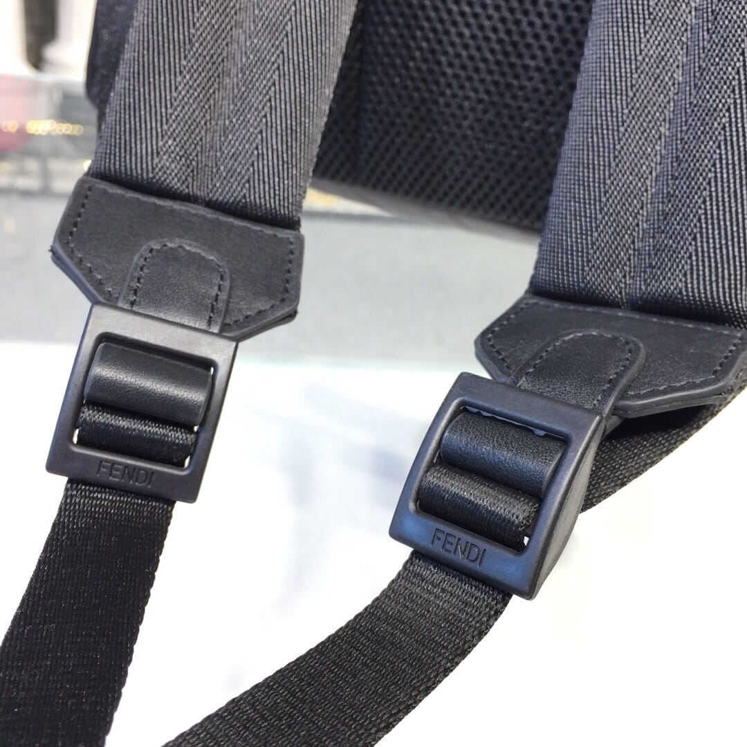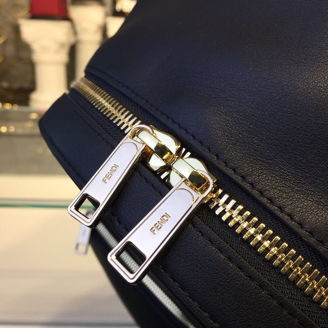 拉链开合腰包。黑色小牛皮材质??可调节腰带?饰以凸印贴花和形