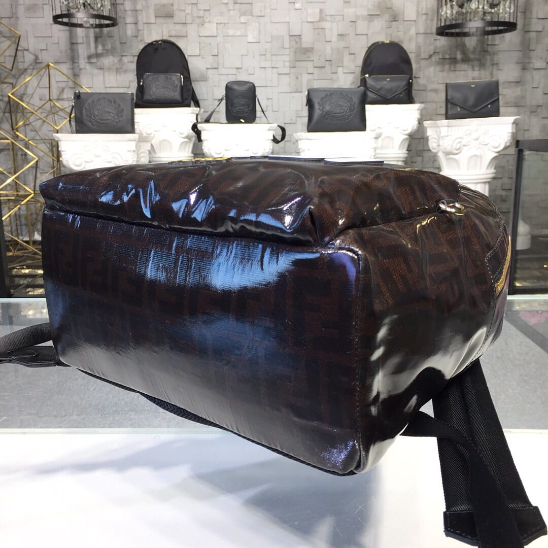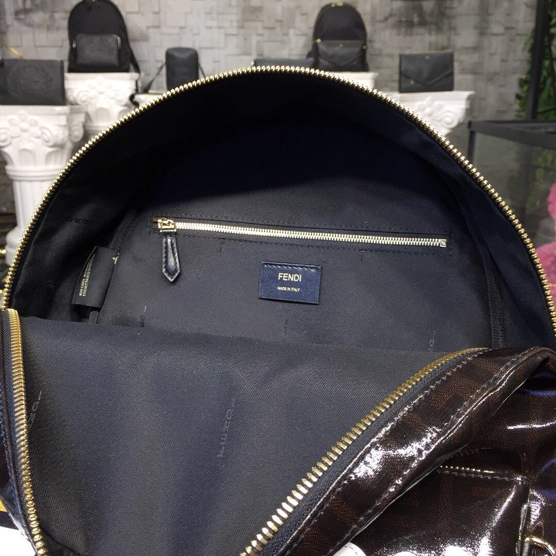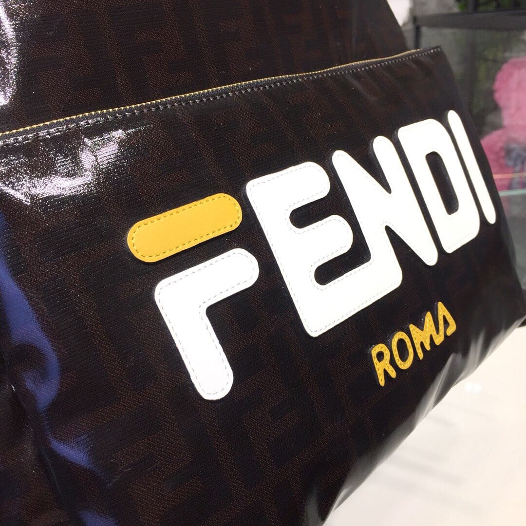 Mania logo背包。顶部有弧状手柄??双向拉链、金色五