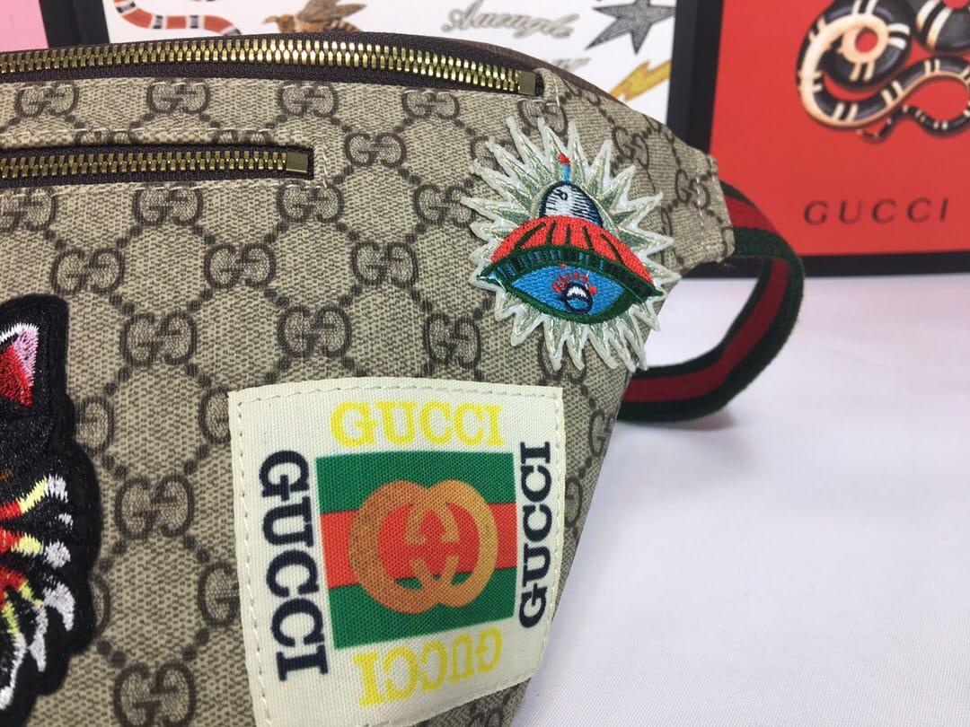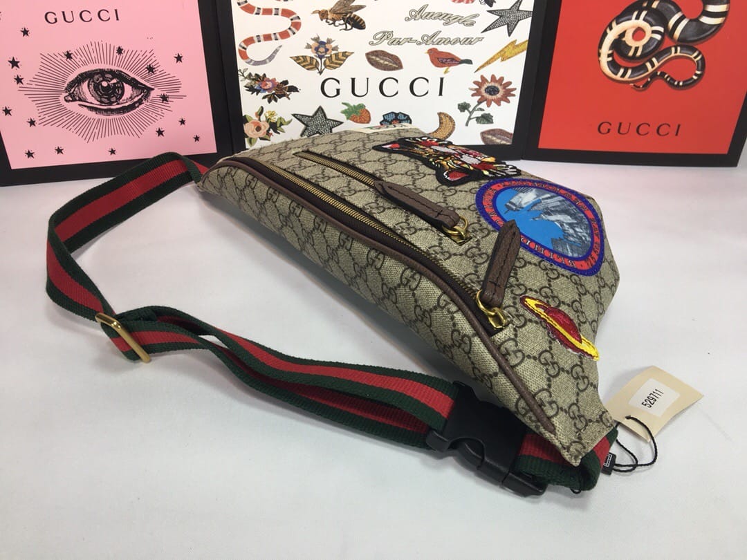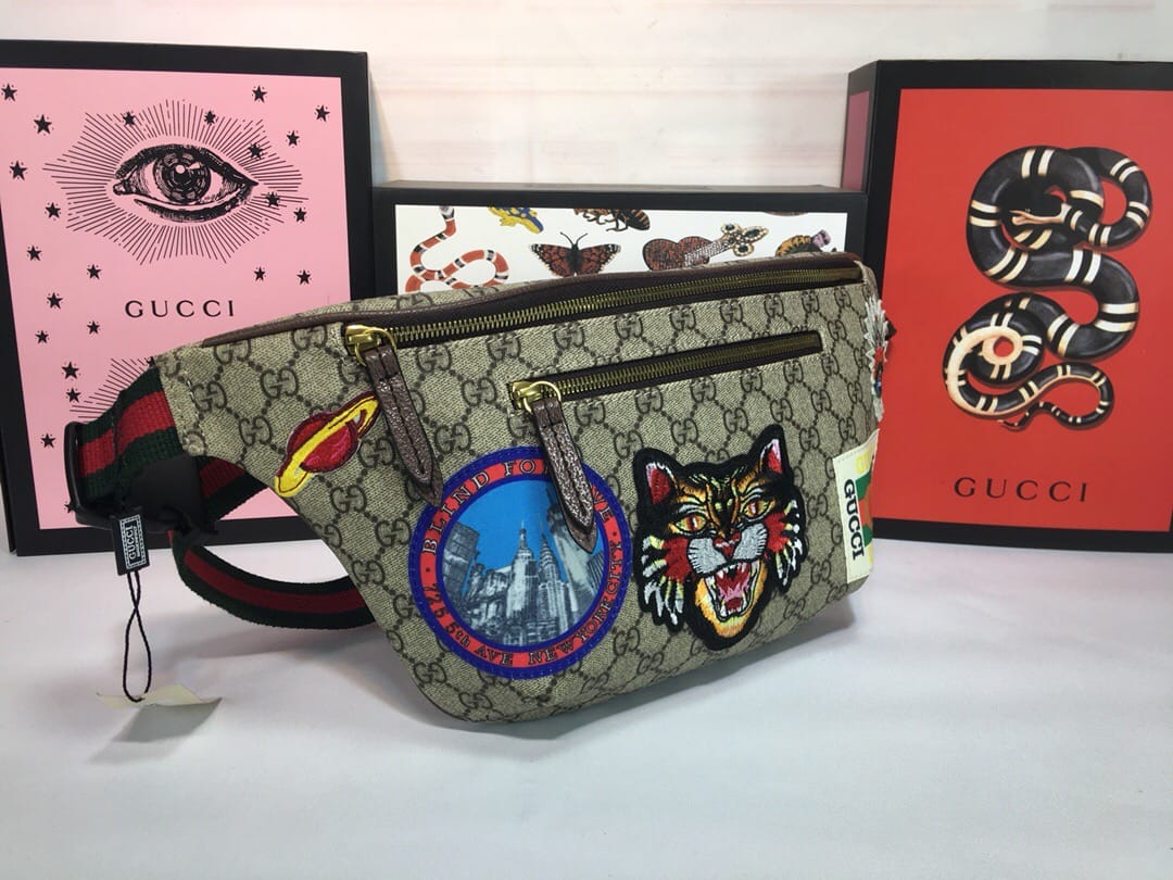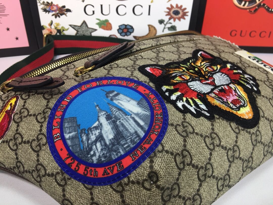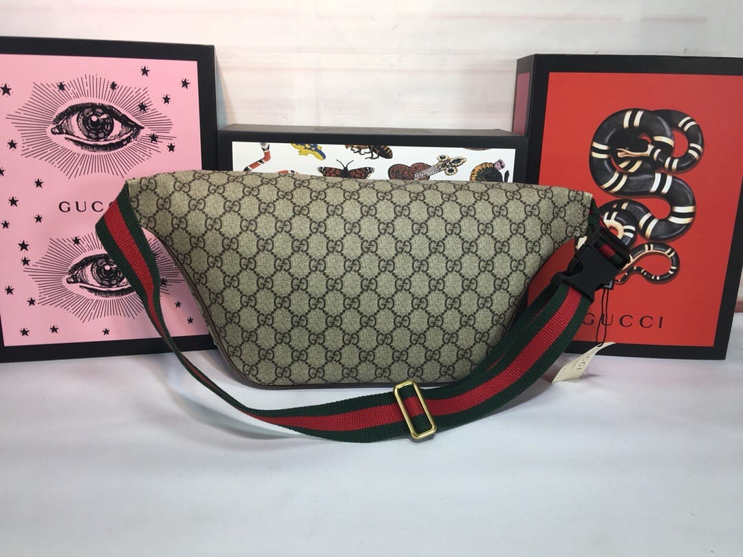 {古驰}男士腰包!原单狠货,Gucci又出时尚单品,非常种草的一款胸包,GG Courrier Supreme belt bag Gucci家瞩目的包包——徽章标志织带腰包?时尚圈~明星圈同款这款正席卷着整个时尚潮流圈!认准对版刺绣工艺? 尺寸:28*18*8cm