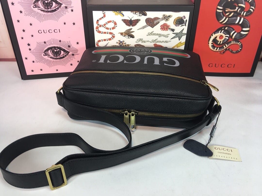 {古驰}男士斜挎包!原版系列,百分百真皮,实用百搭的款型源自于邮递员惯用都市街头大热的单品重回现代时尚世界,尺寸缩小的斜挎包作为基本款式为品牌早秋造型加入了几分运动风范。以带有纹路的柔软皮革制作包身饰有Gucci标识这是一种从复古印花取材的复古图案!尺寸:33.5×23.5×9.5cm